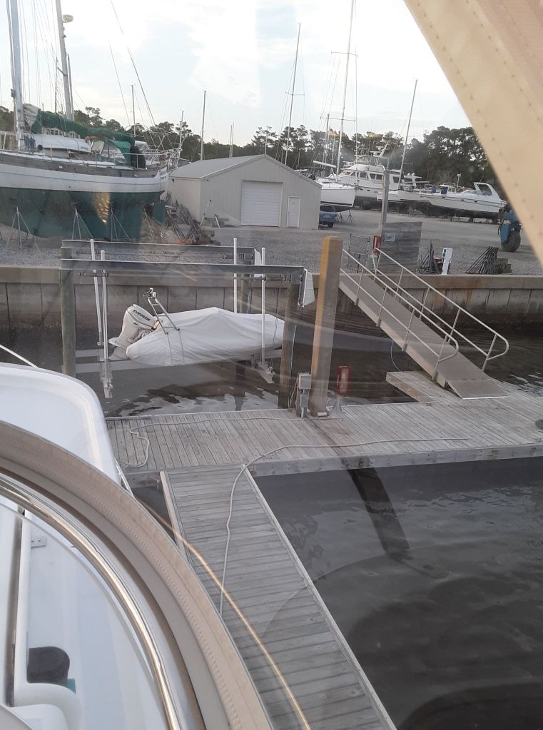 - The yard had a spare boat lift to store our dinghy out of the water until the hydraulic lines could be replaced