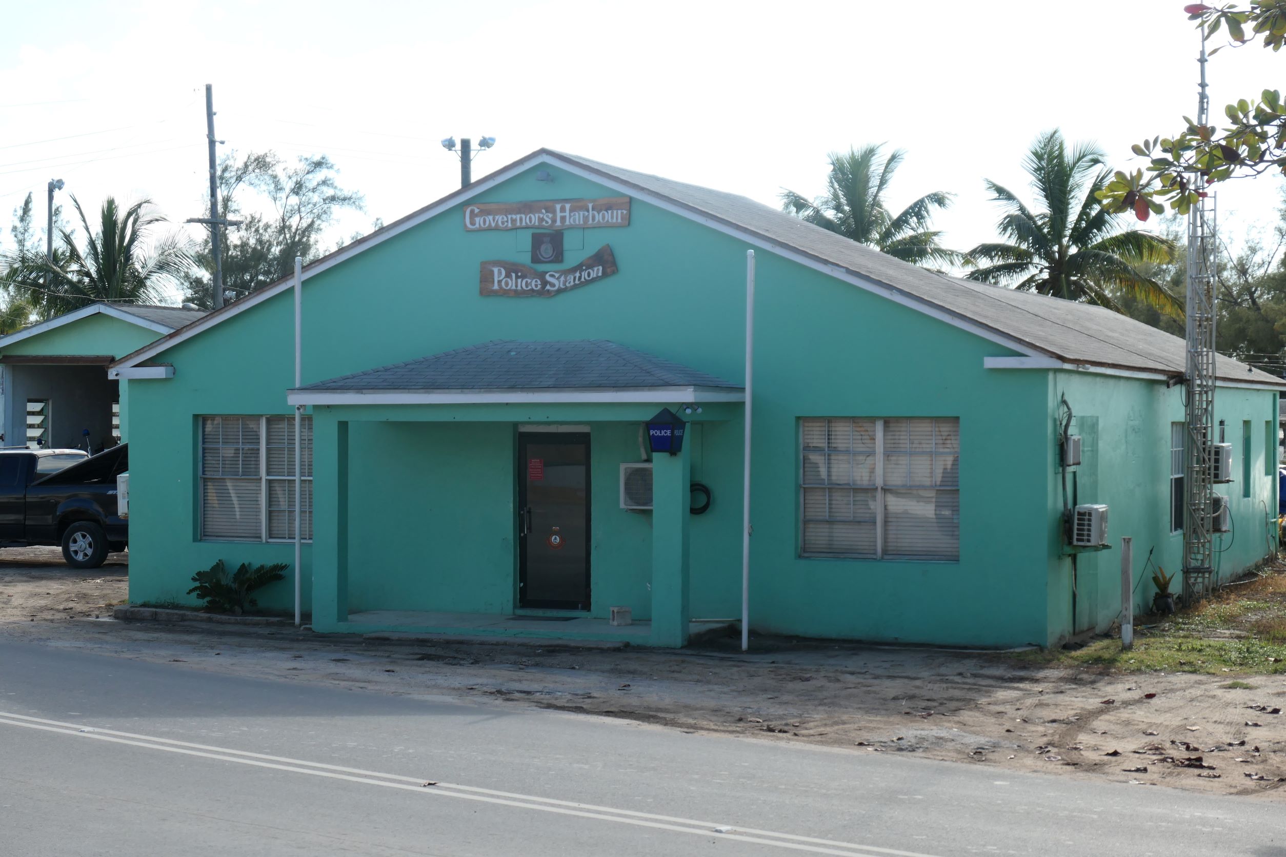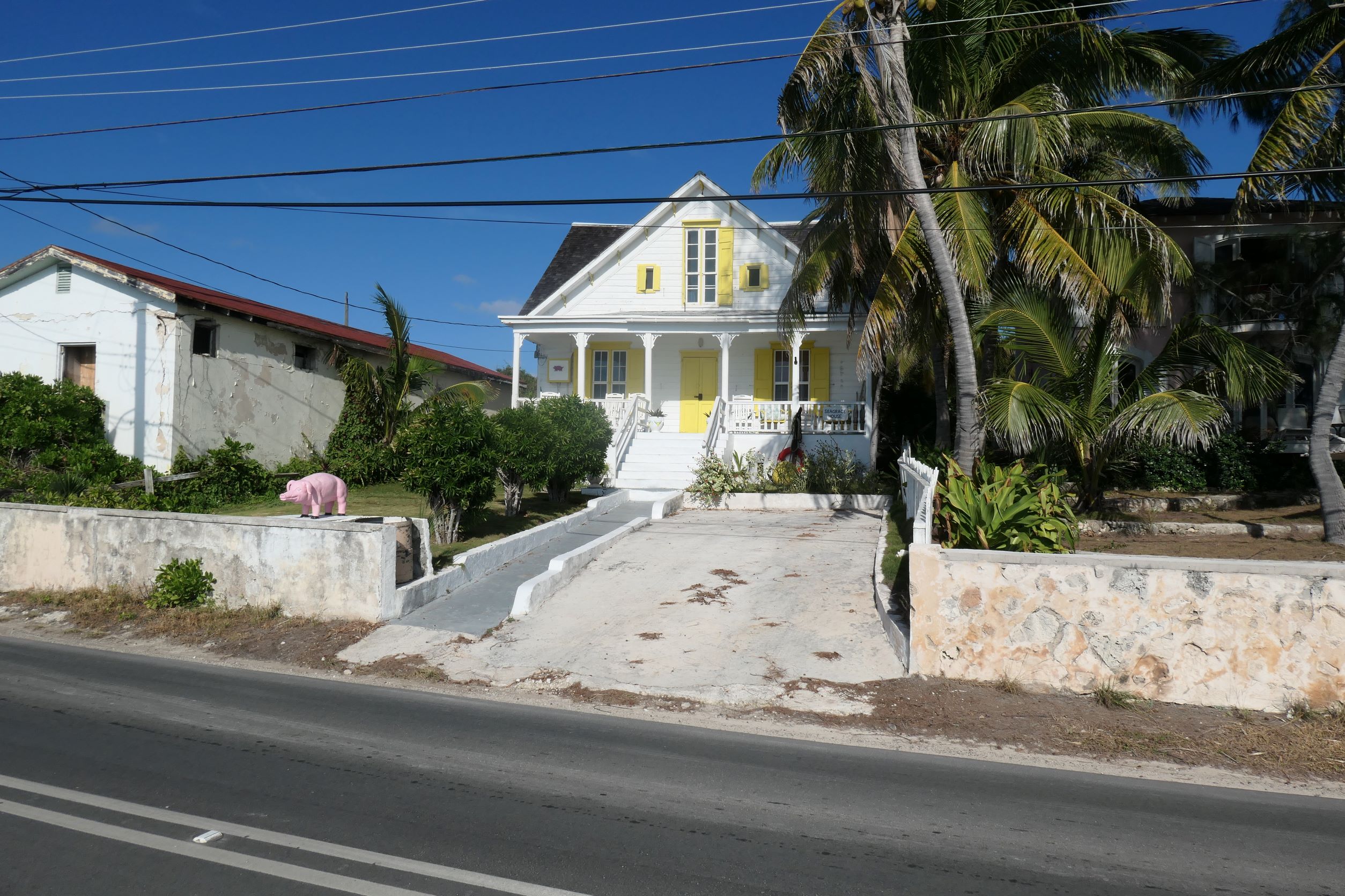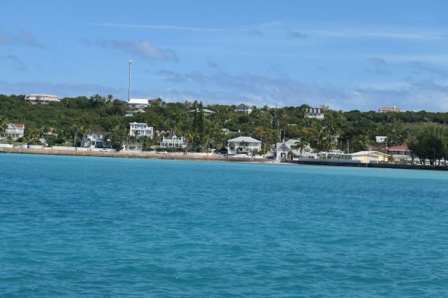 Today, albeit deep, the harbor is a quiet place. Err, sans the near constant rooster crows day and night. We had planned to stay here for a couple of days, so exploring we went. The harbor has houses on the island side and it connects to Cupid Cay, where the yellow government building and big dock are located.
