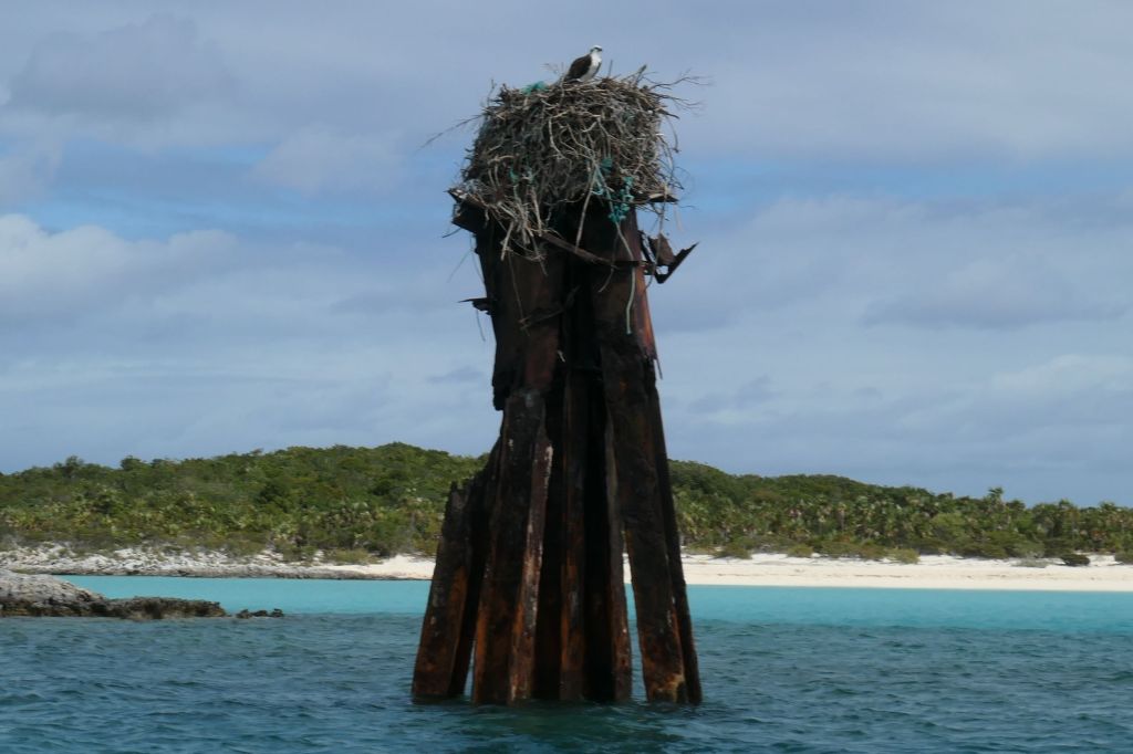 All in all, we anchored in an absolutely ideal spot where the swirling currents flow around us but don’t roll us. We are snuggled in a small area between a nice house on Little Pipe Cay (left photo below) and a tiny unnamed cay with a beautiful setup – dockage, multiple houses, and their own beach (right photo).