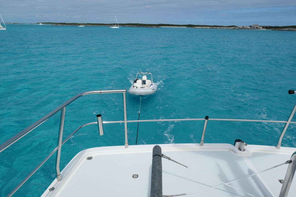 Rather than taking the time to put the dinghy up top, we opted to tow it to the new spot. Goodbye, bobbing sailboats. We’re outta here. Hang on, Lil Filly!