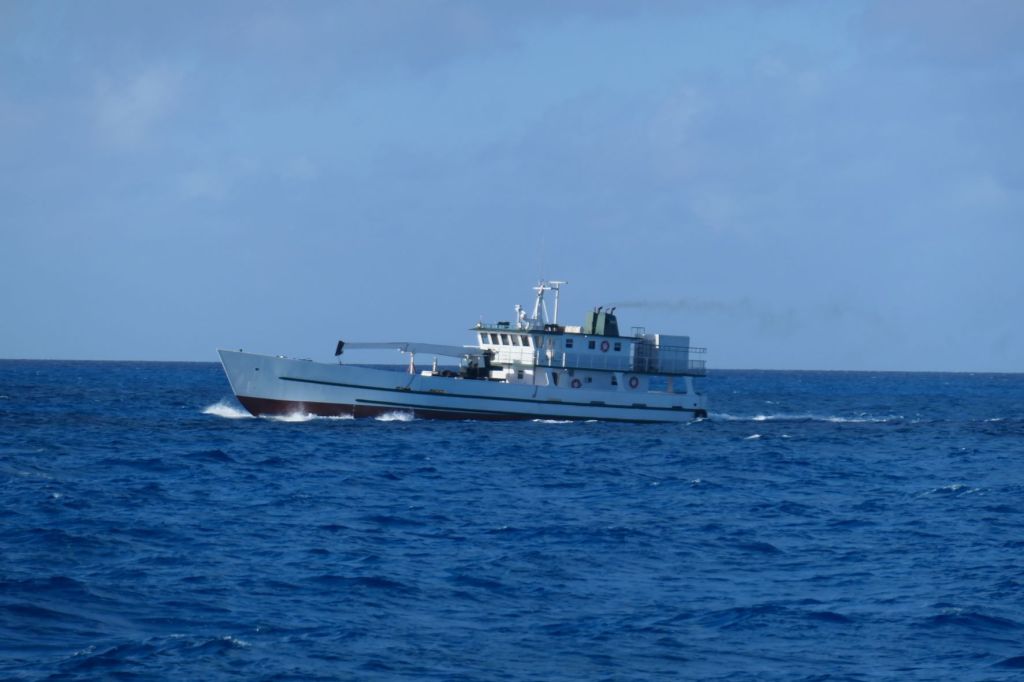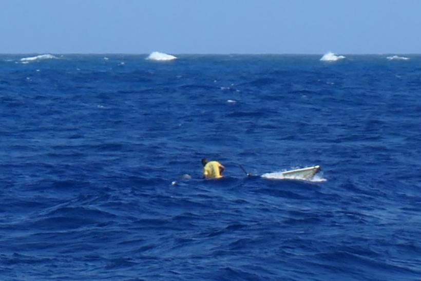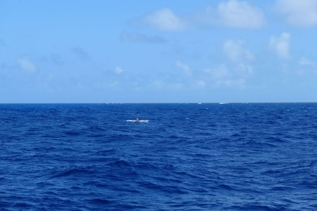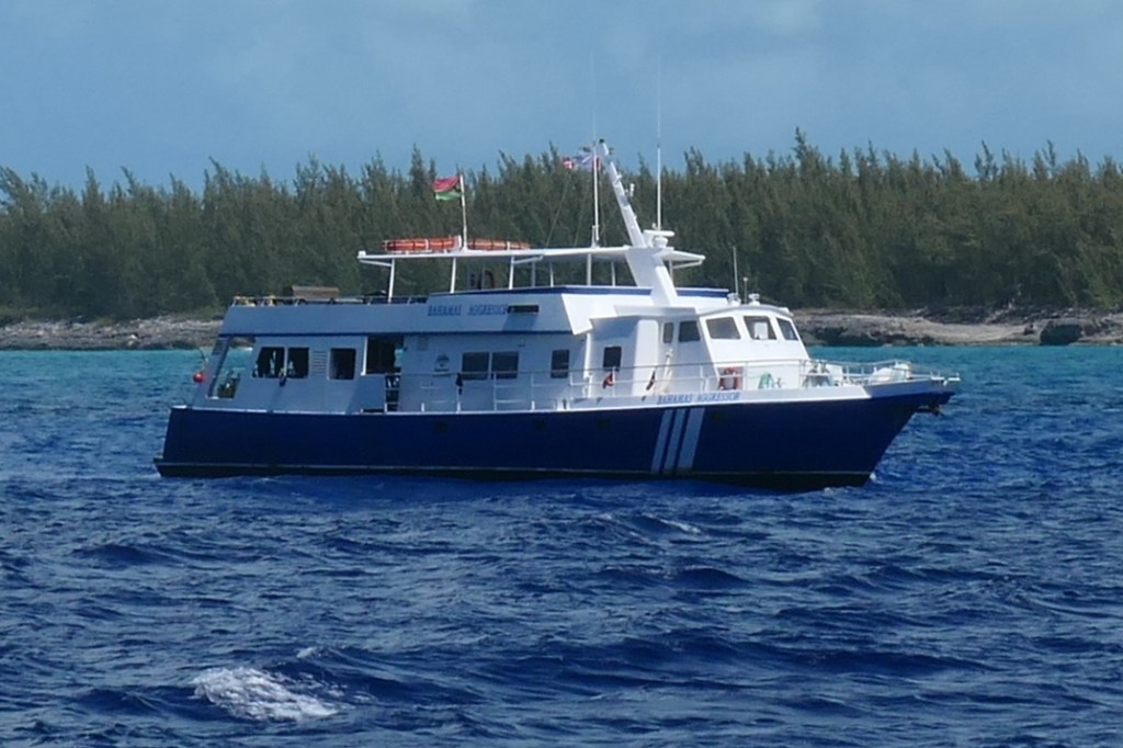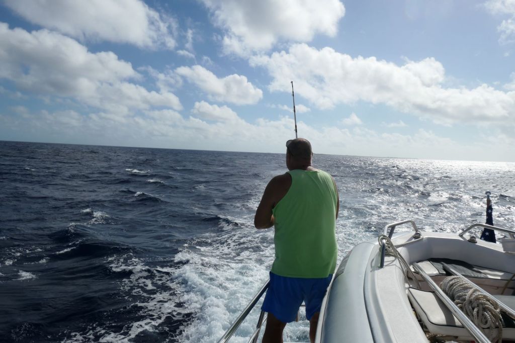 As we cleared the top of Cat and said hello to Little San Salvador again (hey, no giant cruise ship!) we remembered that going across this part of The Exuma Sound can be sporty, as its open to the ocean. Couple that with that pesky southern swell, and we had fun. The swell catching us on the rear quarter was expected, just not appreciated. Ha! Oh well, we’re tough. As we were being pushed around, we looked out, and what in the world is that to starboard? A lone fisherman? Wow! We’re tossing about in almost 60′ of rugged boat, and he’s out there in a johnboat? I sure hope he hasn’t gone to Todd’s School of Fishing. Kidding aside, wow, just wow.