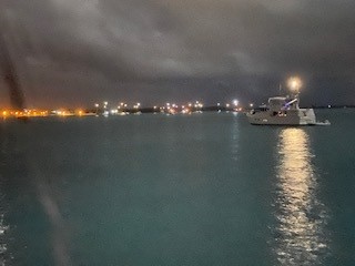 We’re back in Rock Sound due to the weather. Yep, another cold front; thanks, guys. (We know you don’t much like ’em either.) After that quick run to the market, we had a beautiful sunset and, of course, the conch horn bid the day adieu.