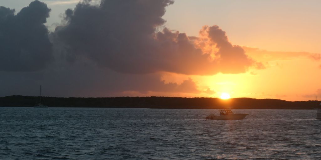 The wind was going to be pretty stiff out of the south for a couple of days. You’ve seen the map of The Exumas in that they line up pretty much north/south and in between the water flows strongly in and out. So, finding a spot that has some southern protection is a challenge. If you remember Highbourne and its checkmark shape, that crook was a good spot. Problem? It’s quite a ways north. First plan was to head to “good ol'” Black Point Harbour. We bid farewell to the Land and Sea Park Wednesday and headed south, and boy howdy, it was a busy day in the popular Exumas. We must have passed 15 boats headed north and 10 boats headed south. At one point, our radar was tracking 14 “targets” within 2 miles of us. Folks were moving around, all probably seeking the same southern protection.