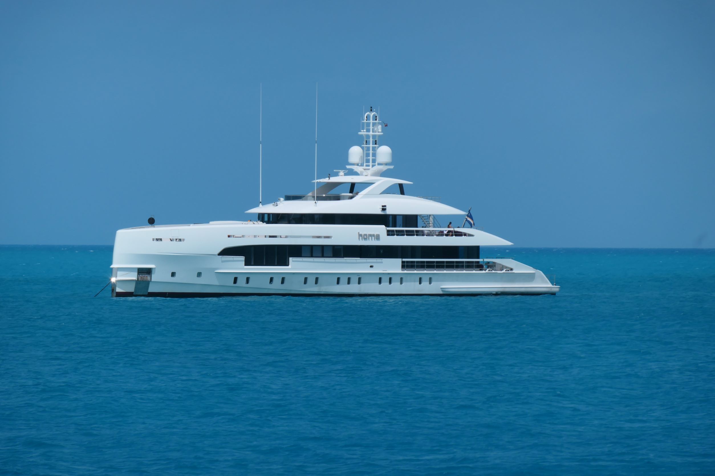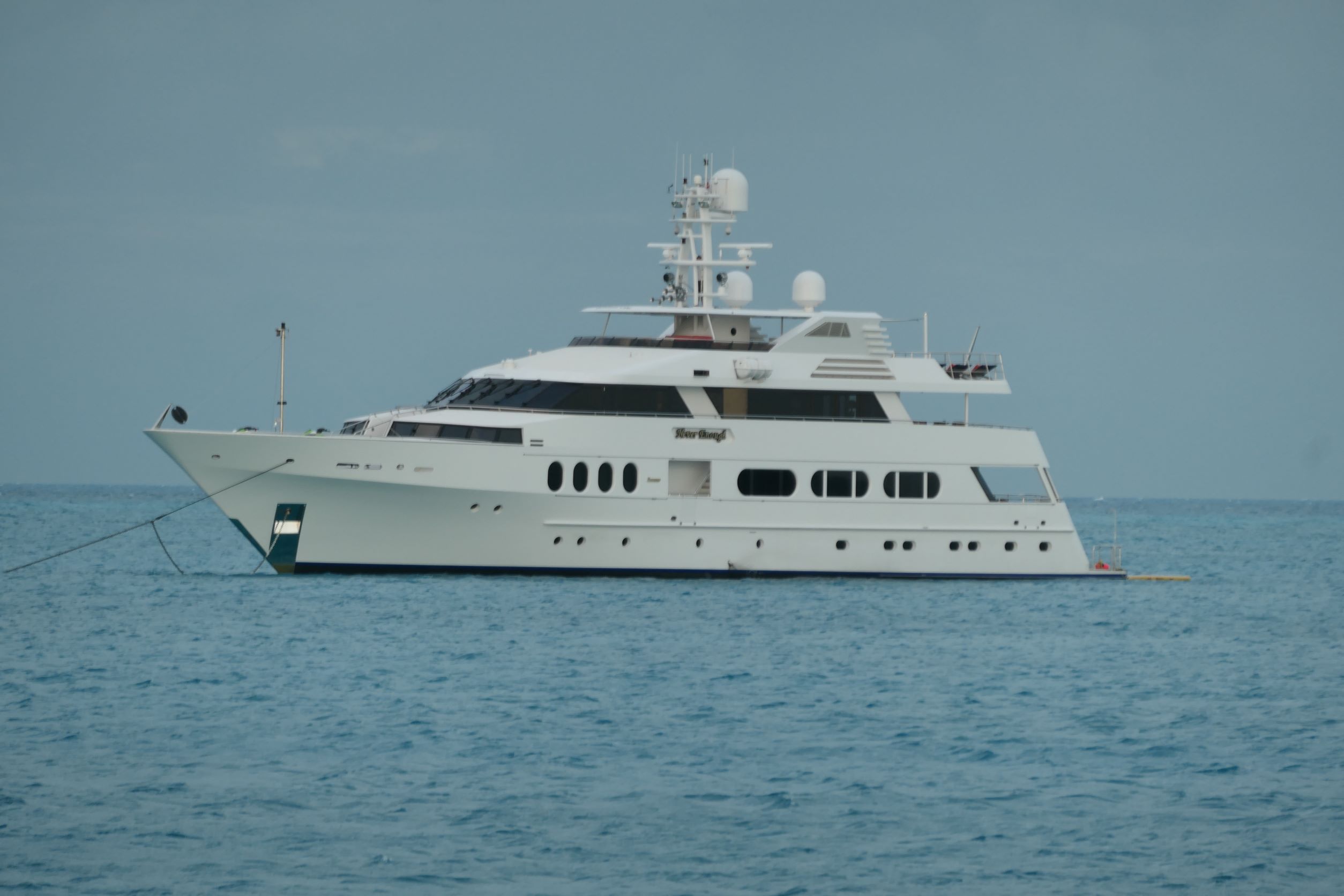 The anchorage? All day, the big boats moved out and new ones moved in. Including the Royal Bahamas Defence Force! Apparently, the entrance requirements were reduced slightly, because we had (clockwise from the top left): No Comment -154 feet, Never Enough – 140 feet, Home – 163 feet, and the Royal Bahamas Defence Force P303 (100 feet or so? Who cares? They’re the good guys!)