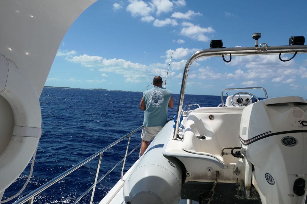 What’s with “that spot?” Well, several cruisers we’ve met, when asked about catching Mahi, pointed to a spot on the chart off Solider Cay. Don’t worry Todd, EVERYBODY catches one there, it’s a sure thing. So….. sure enough, about 1½ miles north of that spot, zing!