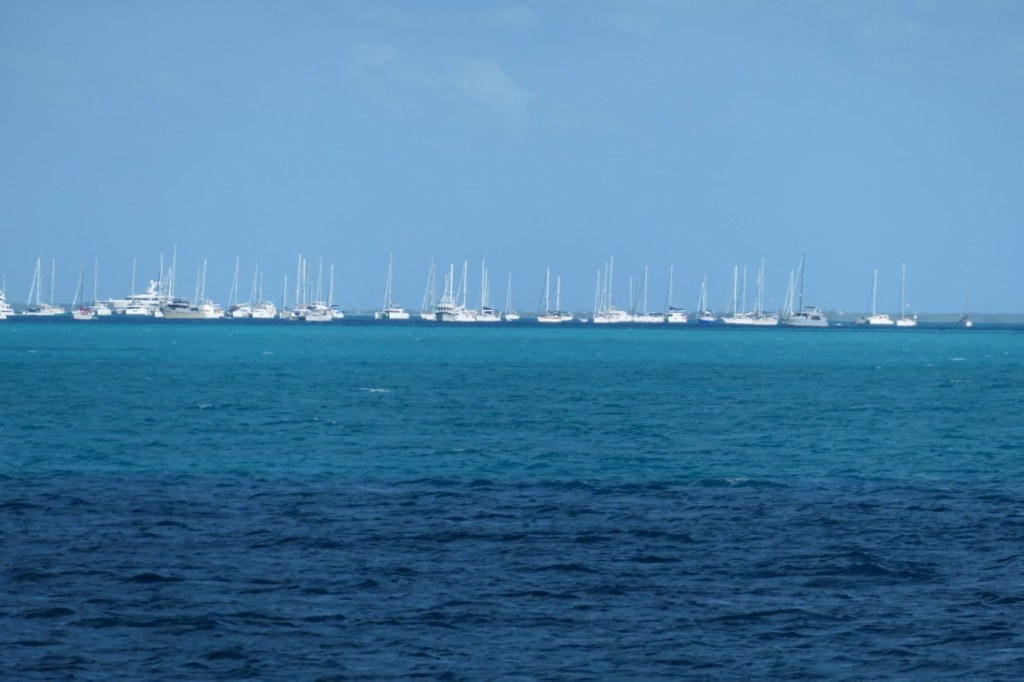 In areas with heavy concentrations of cruisers, there’s typically an organized program called a “Cruisers’ Net” held each morning on the VHF. All kinds of topics are covered, from where to get supplies, or get rid of trash and used oil, to Yoga on “this” Beach or Volleyball on “that” beach. Any question you have, someone will have an answer to and try to help. Arriving boats announce themselves and departing boats bid adieu. We had a friend compare it to being on a cruise ship. Another called it “Adult Day Care.” No doubt, there are a lot of cruisers that enjoy this kind of comradery. In fact more than 278 boats were counted by the morning volunteer and her 9-year-old assistant – thought to be a record for “this late in the season.” That’s A LOT of boats in one place.