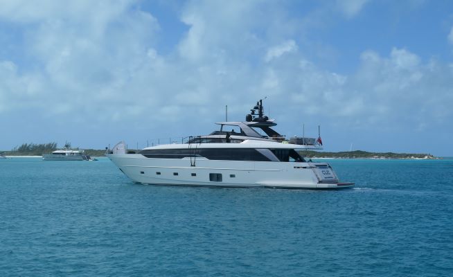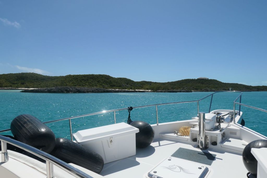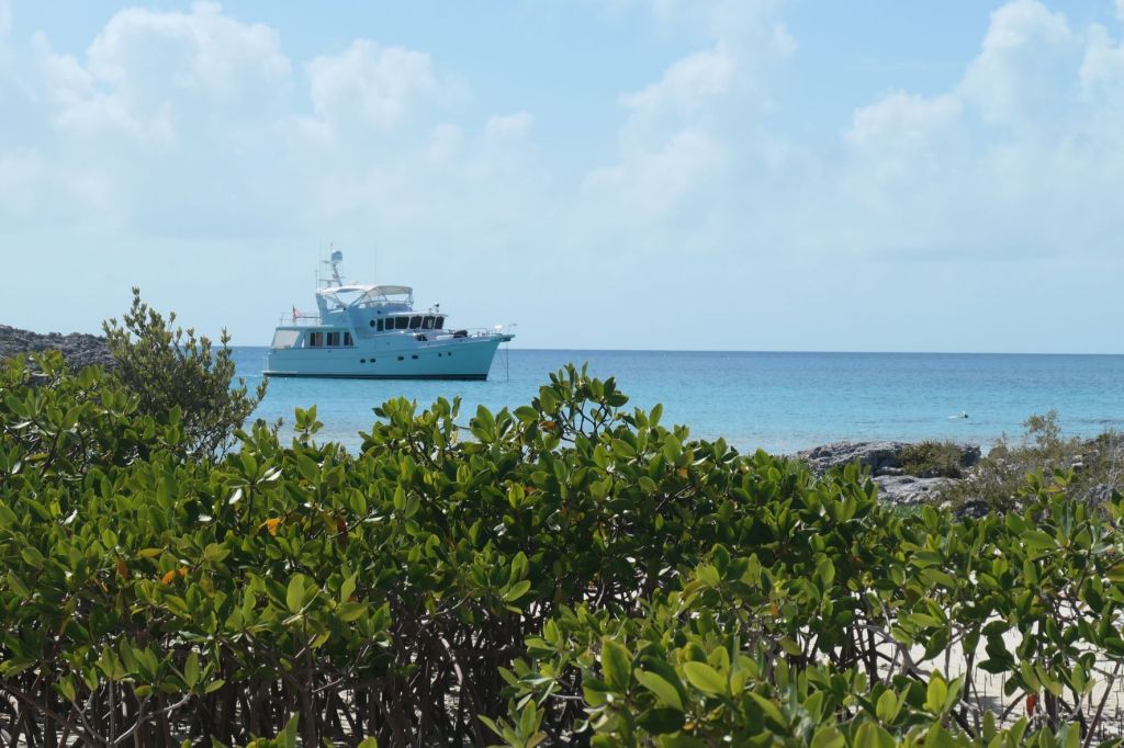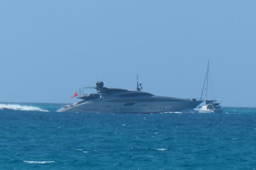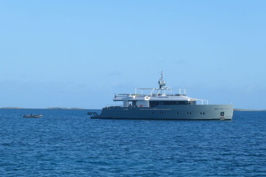 There were quite a few mega yachts anchored on the Exuma Bank just inside the cut. (Yes, that one has its own chopper.)