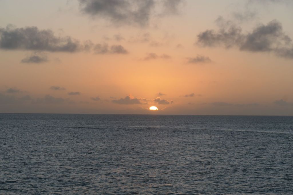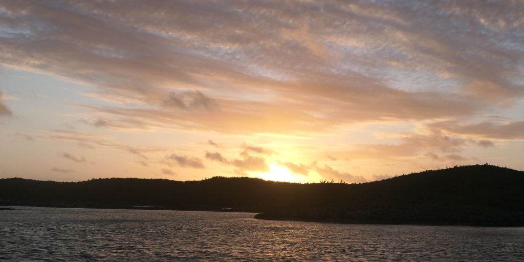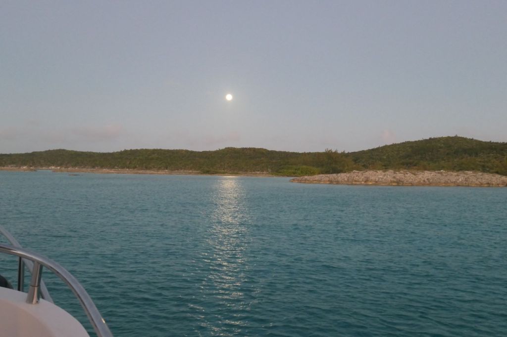We’d been watching a storm off in the distance and hoping it wouldn’t hit the anchorage while we were ashore. The boats could use the fresh water rinse, but their owners left hatches open, and the rinse is really not helpful INSIDE the boat. Although we got sprinkled on, the rain remained in the distance and led to a spectacular display at sunset! Good night, Normans Cay. And all the “go-fast” party boats were gone… Andre was right.