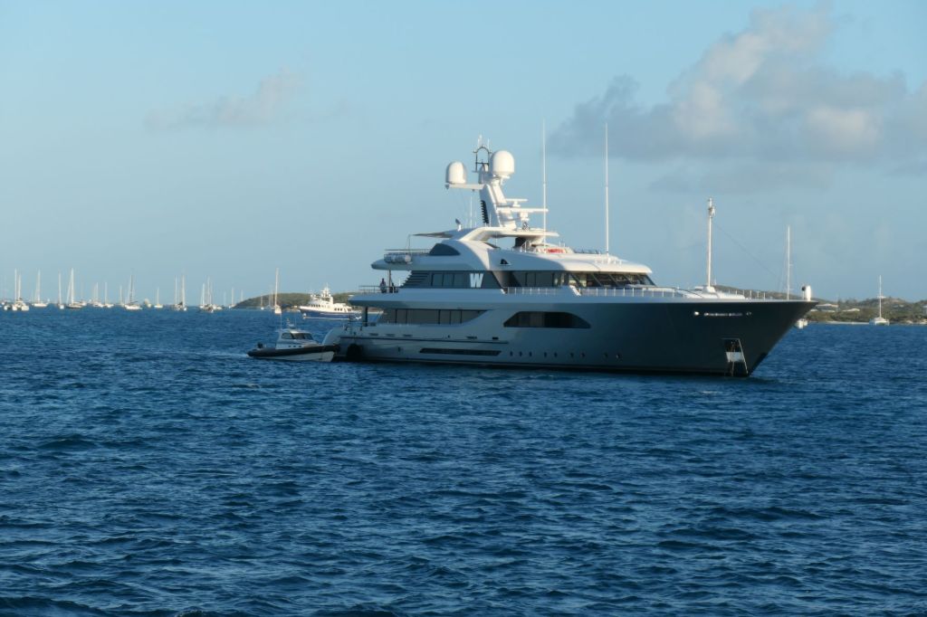 Like we said, we understand the appeal of a stop like George Town, but we were anxious to leave all those boats and friends in Elizabeth Harbour behind us in search of more Bahamian adventure. Heck, we’re cruisers! Leaving our spot in the anchorage, we passed this big girl, very pretty with her two-tone outfit.