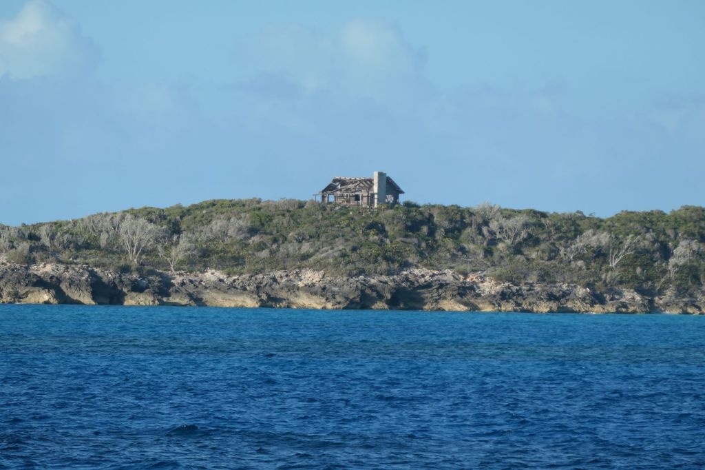 Just outside the big harbor, we waved at the folks on their adventure cruise aboard the National Geographic Sea Lion. Further down the Exuma chain, that cabin caught our eye because it has a big ol’ stone chimney! In the Bahamas! After that, we only saw one sailboat, and it was headed in the opposite direction.