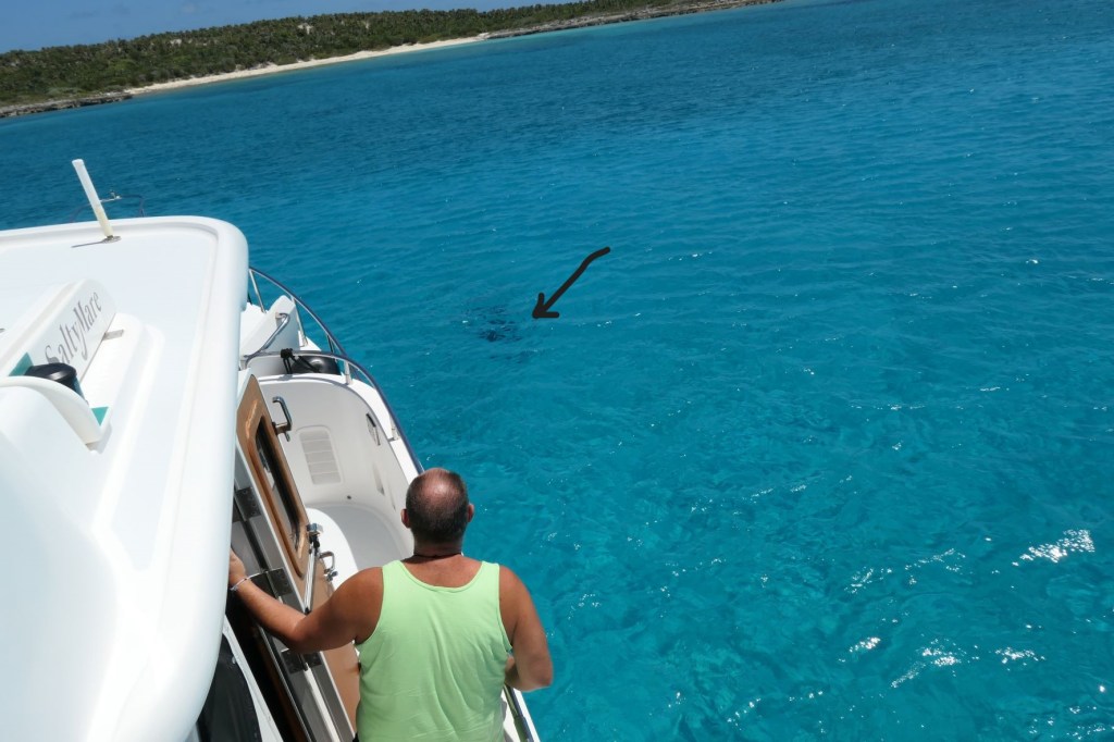We’d been told the fishing boats frequently anchor in the north anchorage of Water Cay, which, in turn, brings the sharks. Sure enough, as soon as we lifted the dinghy from the water, we had a curious visitor.