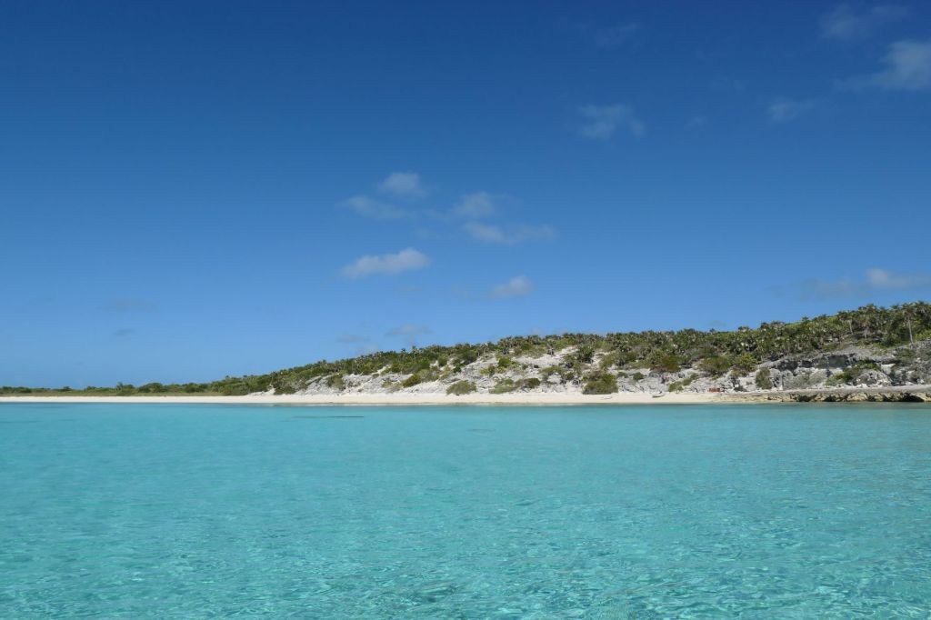 After experiencing the comradery of George Town, we wanted to venture a bit off the beaten track and head to the Jumentos Cays and Ragged Islands. First destination is a small – that’s right, you can’t see it – island called Water Cay. Conversations with other cruisers noted it as a good staging point. So, after navigating through a small cut in the Exuma chain called Hog Cut by Hog Cay (remember that name), the water was shallow, but we hit it at high tide and never saw the “dry water”…which was good, cuz Susie needed to exhale.