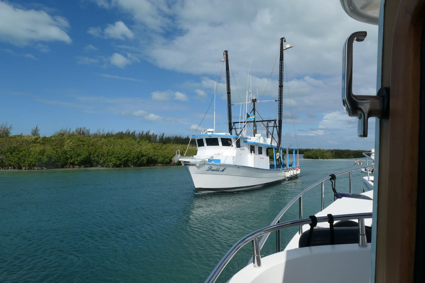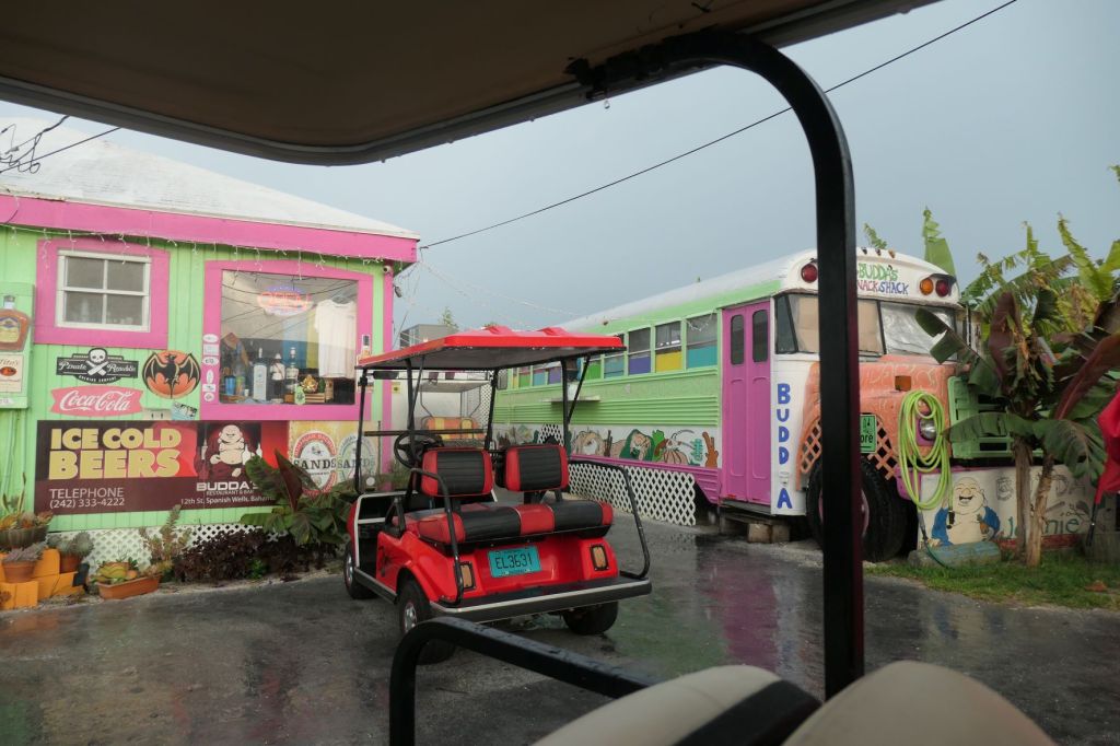 There’s another highly recommended eatery, the Sandbar Bar and Restaurant, across the Roderick Newton Higgs Bridge that connects Russell Island to Spanish Wells. We crossed our fingers that the cart would make it before closing time. 😉