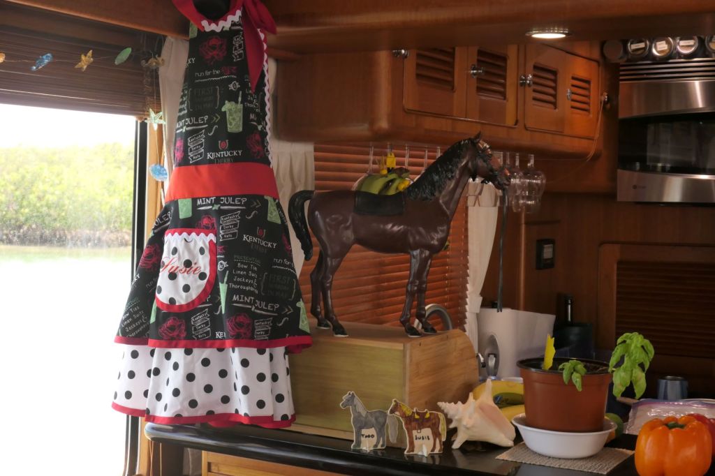 More importantly the SaltyMare is “decked out” for this year’s Triple Crown! Alright, alright, we live on a boat, so “decked out” may be a stretch due to the limited storage space allotted to trinkets, but given our history and living on a boat affectionately known as “the Mare,” you know we’re going to celebrate the season!
