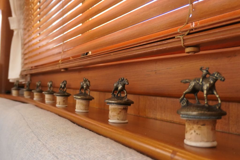Okay, this is funny. The gooey-looking stuff under each decorative item is Museum Putty. We use it to prevent stuff from being tossed about as we cruise. Umm, Susie, we’re stuck at a marina. So.