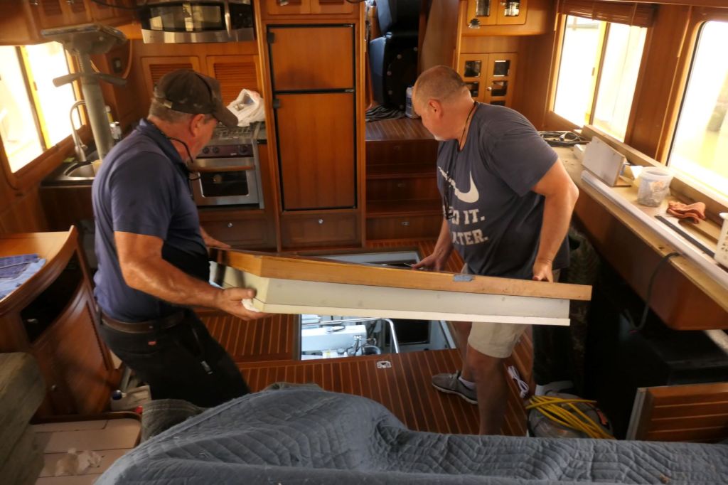 So, there is once again “dancing room” in the salon – well, at least there’s a floor – but we’ve got a fair piece to go to get this girl back together, which we will work on while awaiting haul out. Remember, it’s a dadgum process…