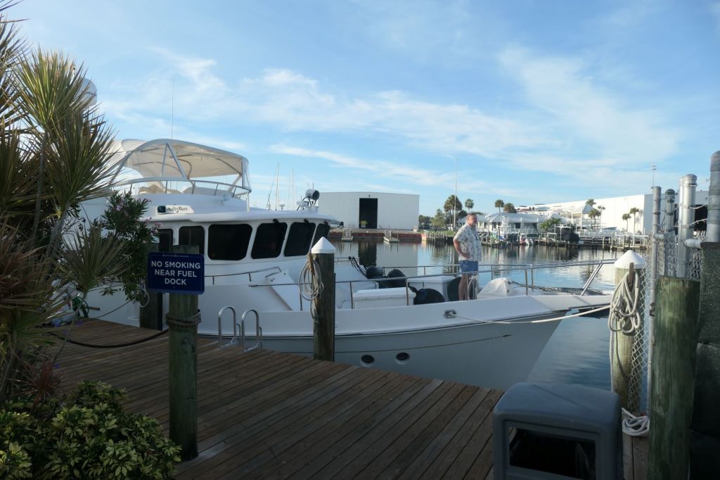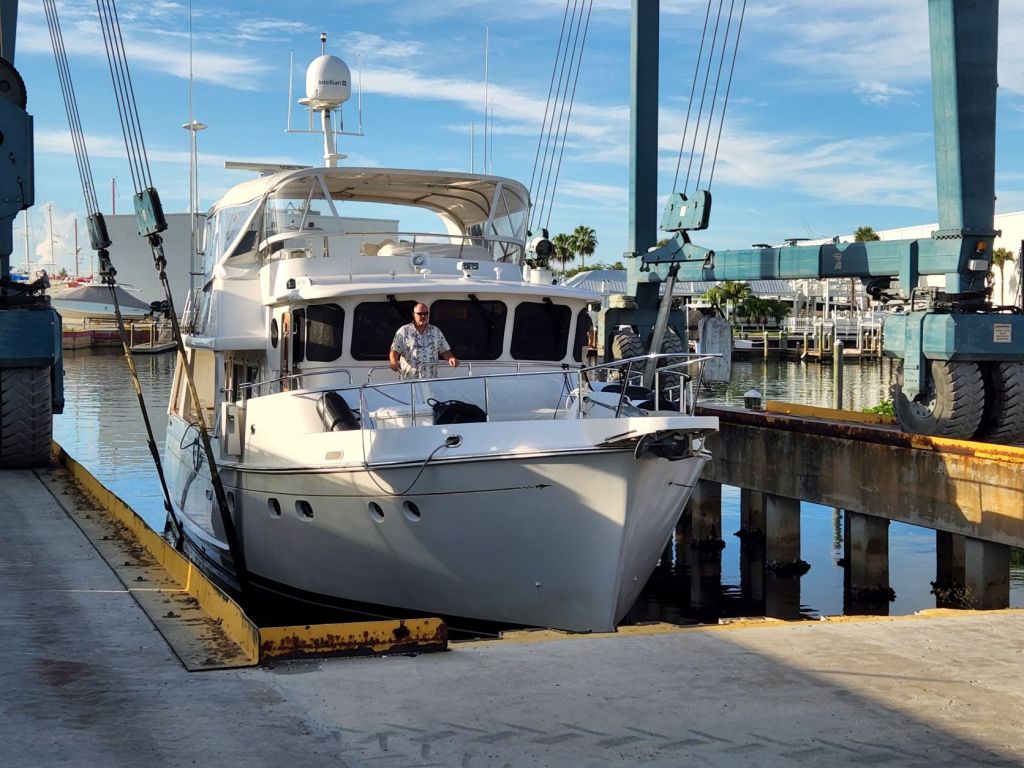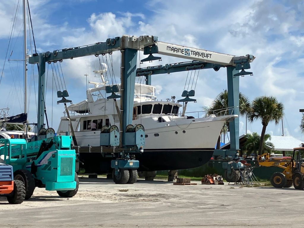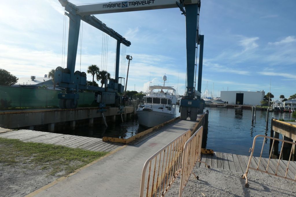 Upon arrival in Fort Pierce, we eased up to the Safe Harbor Harbortown Marina fuel dock, where the rearing and very dirty SaltyMare spent the night. Bright and early Tuesday morning she was ready for the lift literally 25 yards around the corner at Shearwater Boat Yard.