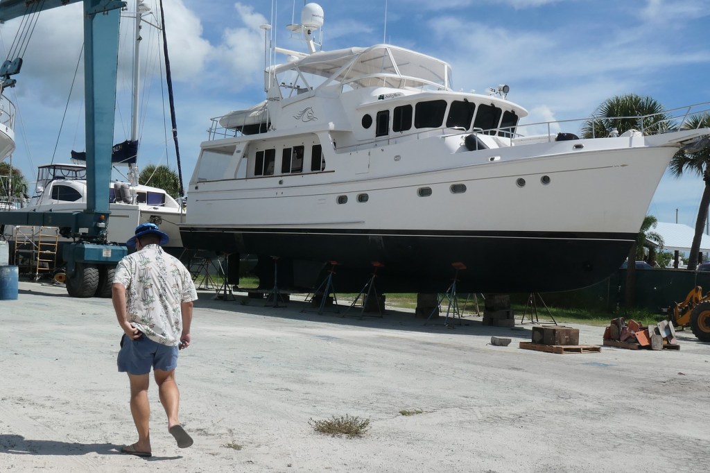 Now that she is in Ft. Pierce and our rented condo is in Stuart, our “commute” is more like 45 minutes. BUT this will be a short service-yard stay, and given a good quick schedule, we will make a few trips bringing our stuff back to the boat so we can return the keys to the condo.