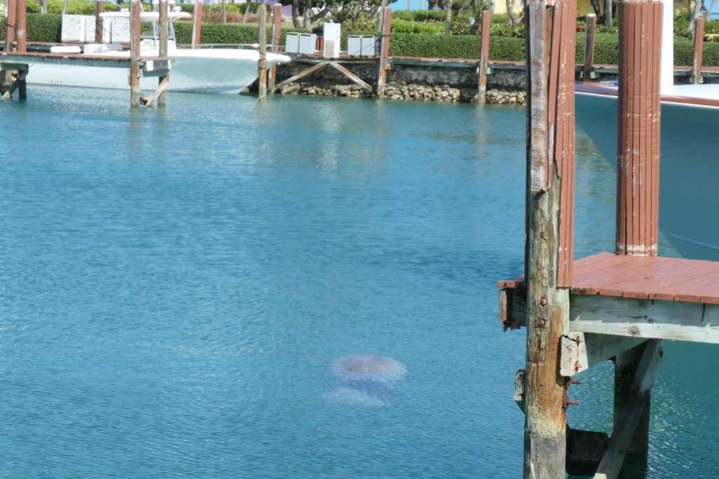 SaltyMare was tucked into the back corner of the marina, very protected from the current – kind of like being docked in an aquarium. And with the beautiful, clear Carribean water, we saw some fun sea creatures. Lots of fish cruising through and an occasional shark!