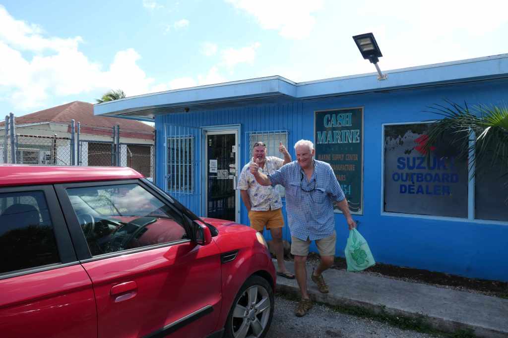 Back to the main reason we were here, Finish Grade’s engine issues had been diagnosed and addressed, but we still needed a few things to finish the job. Monday, we rented a car to drive into Freeport in search of the last necessary items, and after many phone calls and checking several marine and auto part stores, we had not found everything. There was only one place left to try, and when we got there, it was…CLOSED. Not closed for lunch but closed til Wednesday! Oh no!