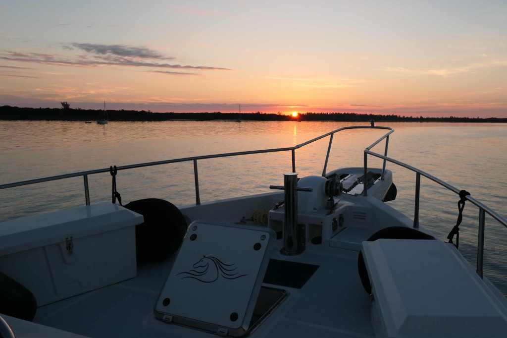 Saturday morning, there was time for a peaceful sunrise with a cup of coffee, and then we weighed anchor for another pretty day of cruising.