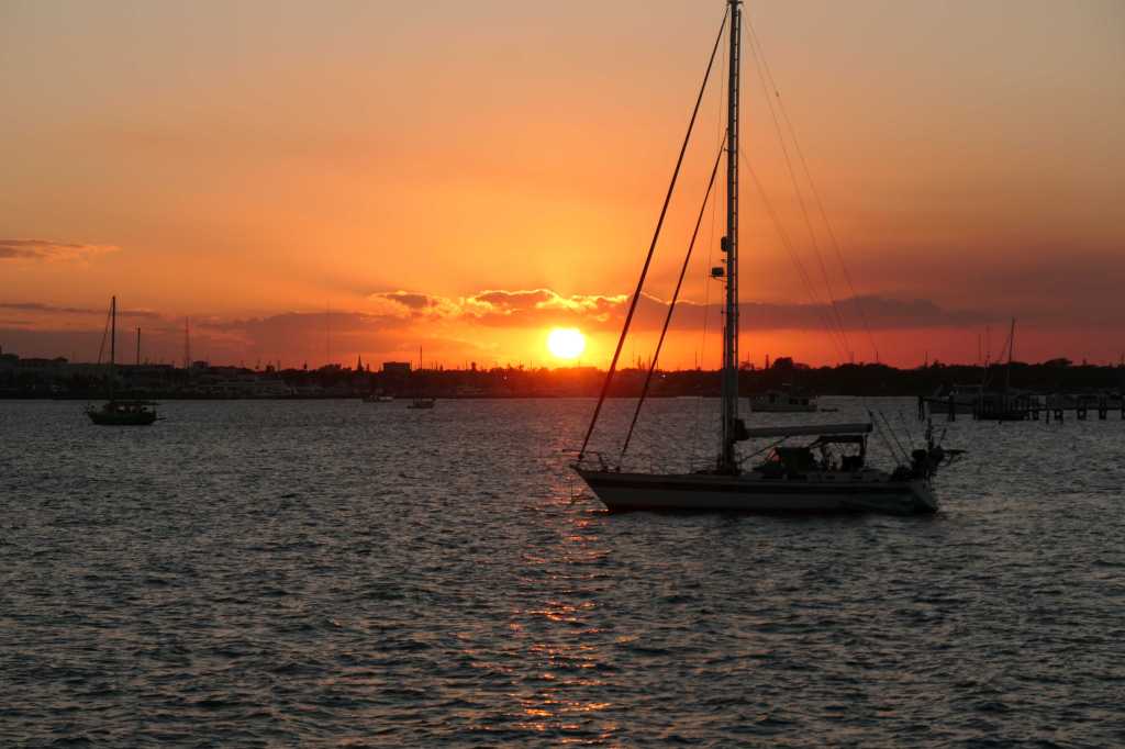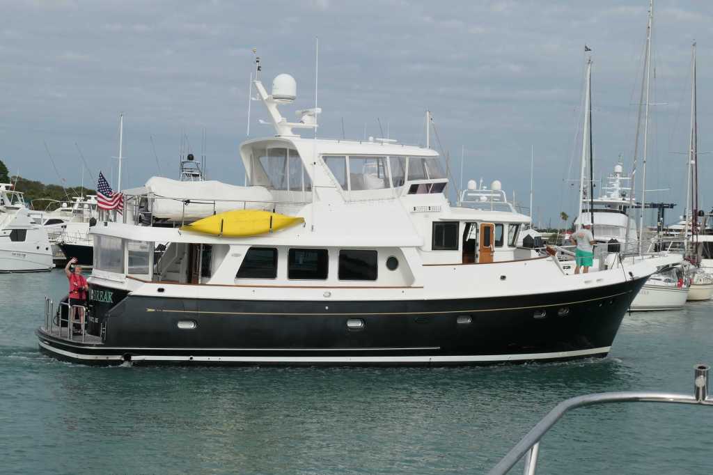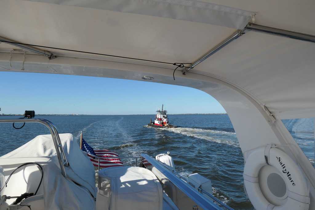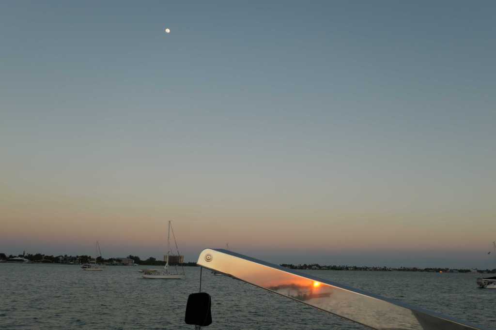 At a whopping 2.9 knots, it took some time to get to where the tow boat was supposed to show up. We did, however, early in fact, and dropped anchors again to wait for the planned 1530 arrival of the cavalry. At 1515, Lynn got a call that the tow boat had engine trouble and wouldn’t be able to make it in time to tow them to safety before dark. At this point, they insisted we hustle to the marina to get docked before sunset. They planned to backtrack a bit and anchor near Sandy Cay where another tow company would pick them up at first light. Words cannot describe how difficult it was to watch their boat get smaller and smaller as we went in separate directions, them at their 2.9 knots, us as fast as the ‘Mare could because we had to reach the marina before sunset.