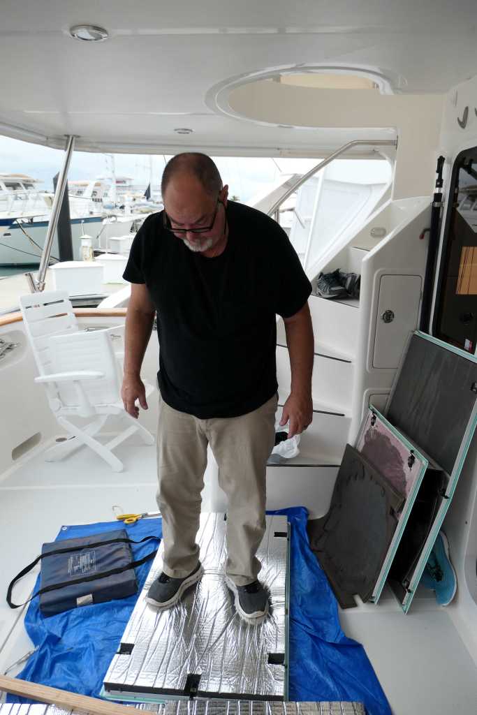 Weary, yes, but after sitting down in the fresh air (out of the engine room) for only a brief minute, the Master of Finish Grade, aka Terry, headed over to Customs to get them checked in.