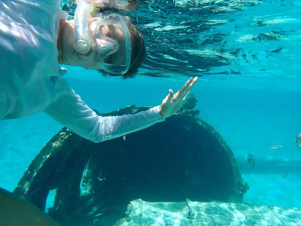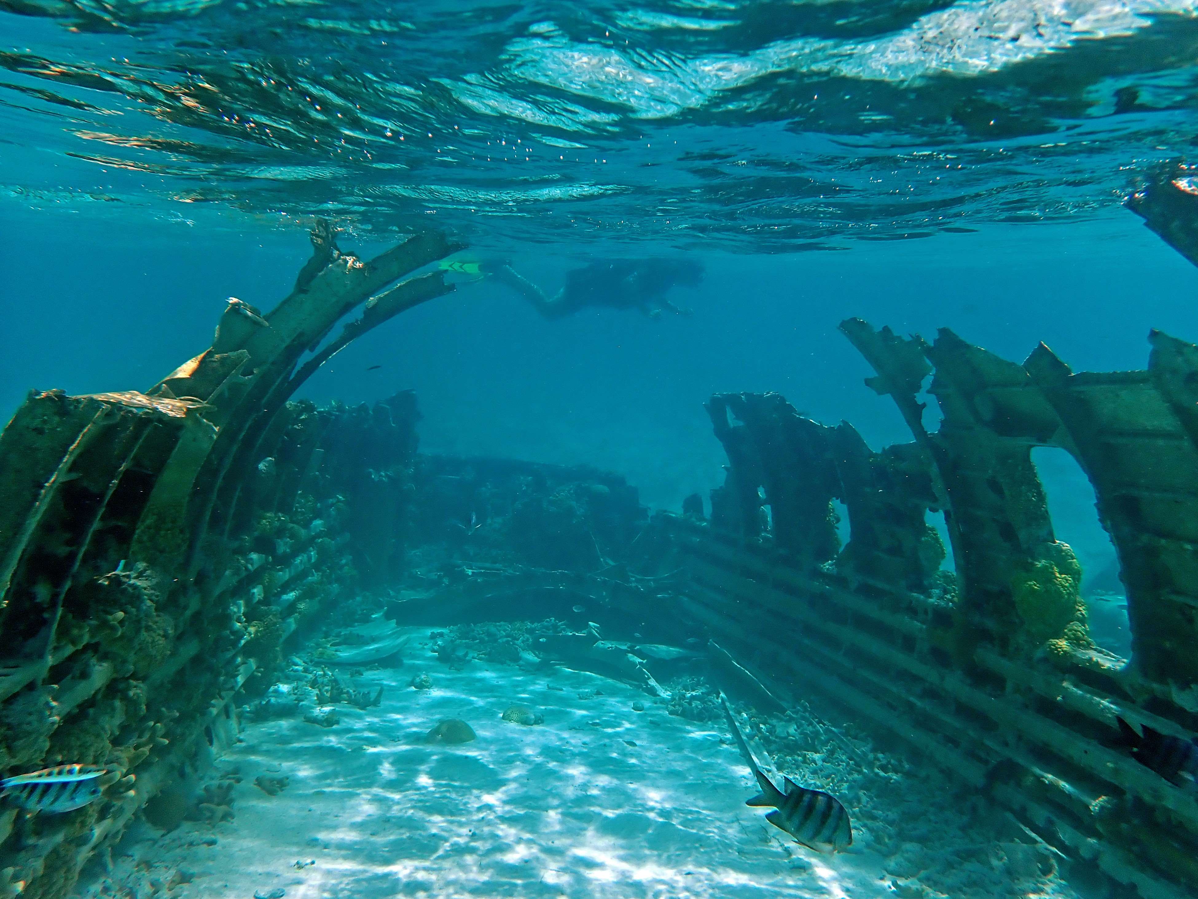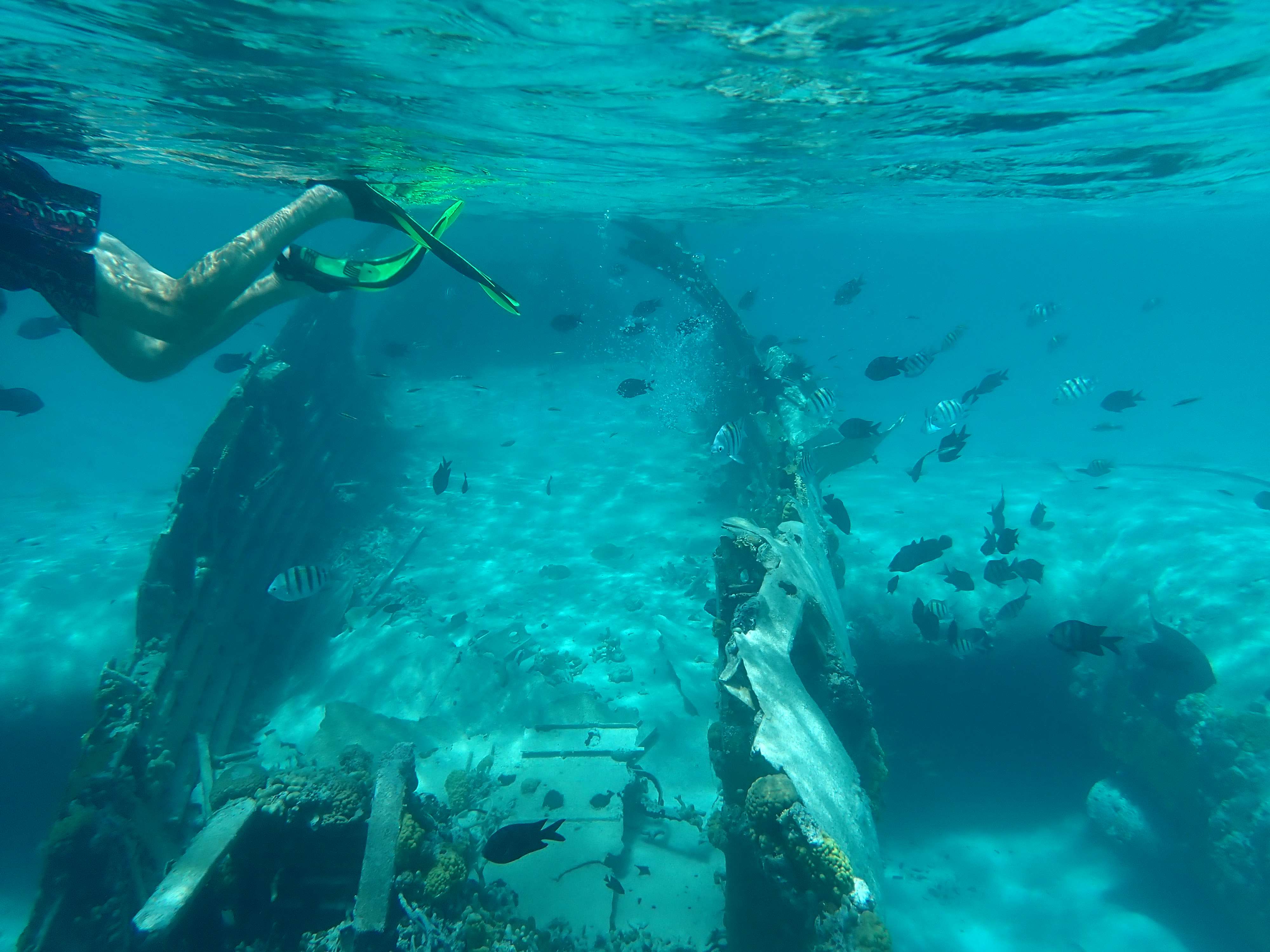View of the plane from the dinghyUnderwater view of the planeOnly one way to get there!