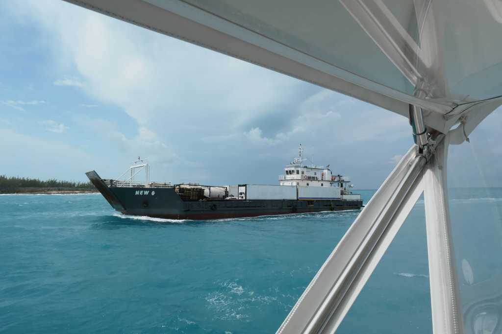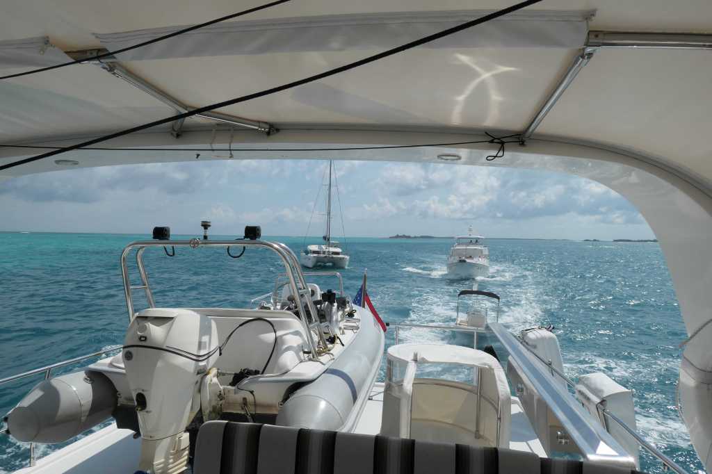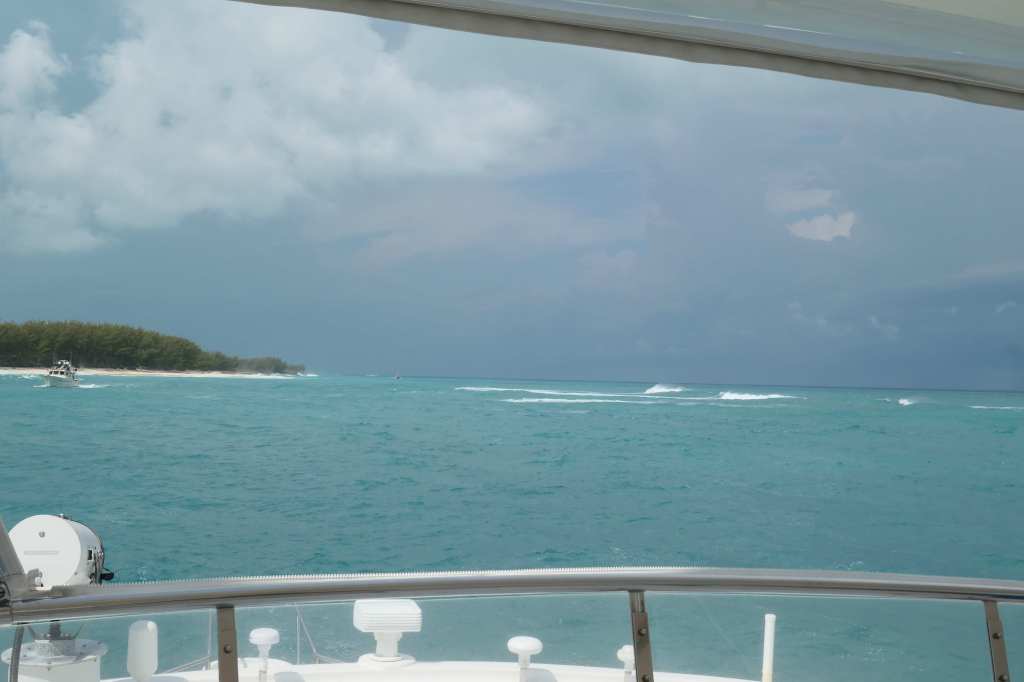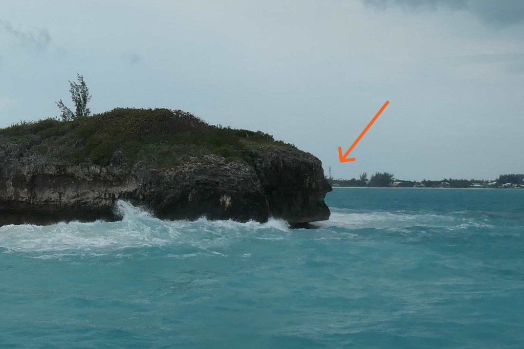 There are two choices to get out of the “bay” bordered by Harbour Island and back to the peaceful anchorage at Meeks Patch. One, an exit to the east, out onto the ocean and long (either 160nm one way or 40nm the other); OR, Two, a journey back across the Devil’s Backbone. We chose the latter and arranged to be piloted back the way we came. Why? Because it was a sporty day!
