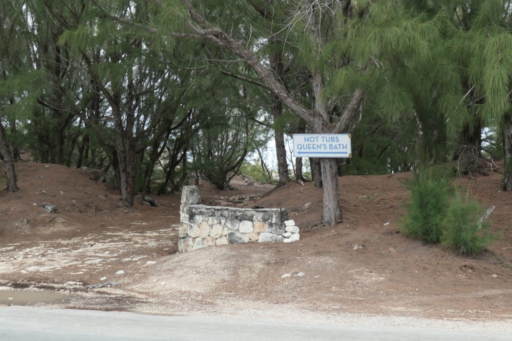 Once anchored, we took the dinghies to the beach, climbed a small hill south of the Window, crossed the road, and found ourselves at the entrance to the Queen’s Hot Tubs and Bath, which is a short mile or so from the bridge on the Queen’s Highway.