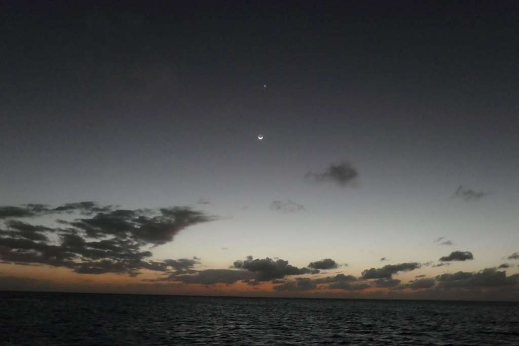 As the sun set and revealed the moon rising, a large yacht crossed the horizon to join us, bringing the number in our little anchorage to four.