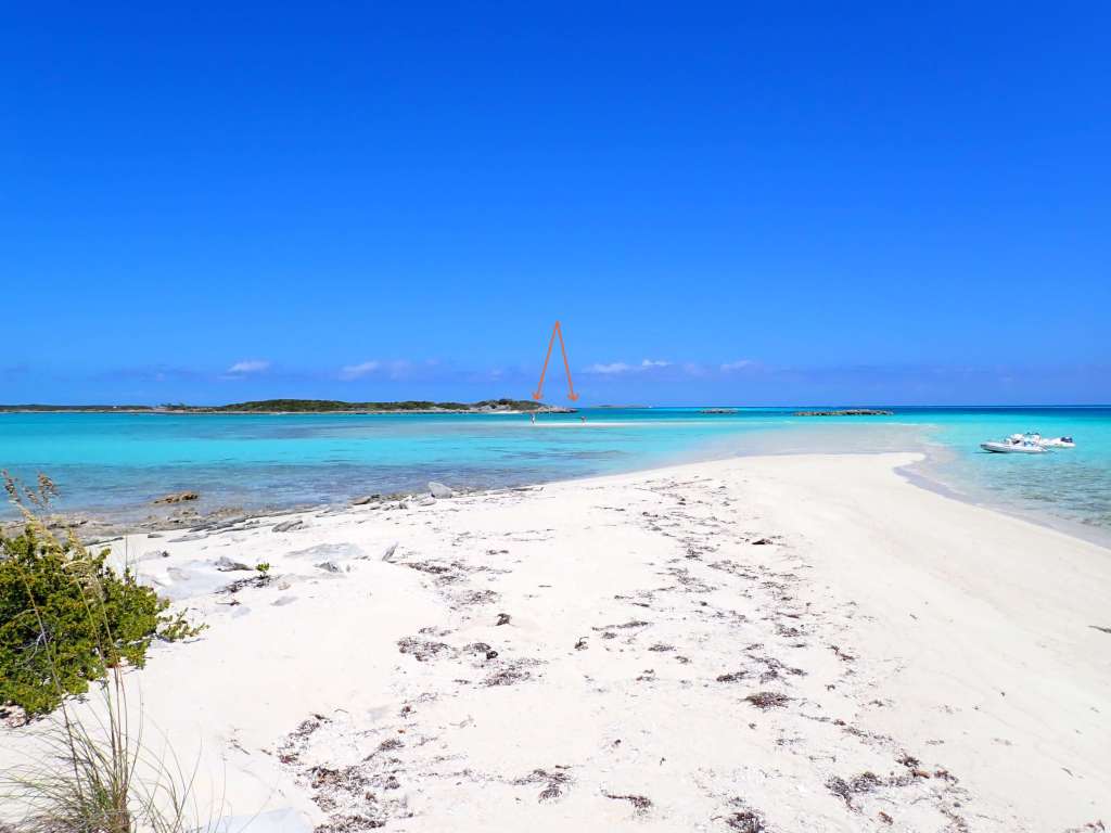 True to form, our small band of intrepid explorers headed out. Fortunately, our dinghies have some range, so exploring we went! The little red boat shows about where we were anchored, and the blue line shows our approximate travels by dinghy! First, we tried one of the beaches on Highbourne; silly us, it was marked “Private.” So, we headed to little Tea Table Cay (center left on the chart).