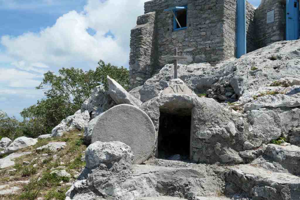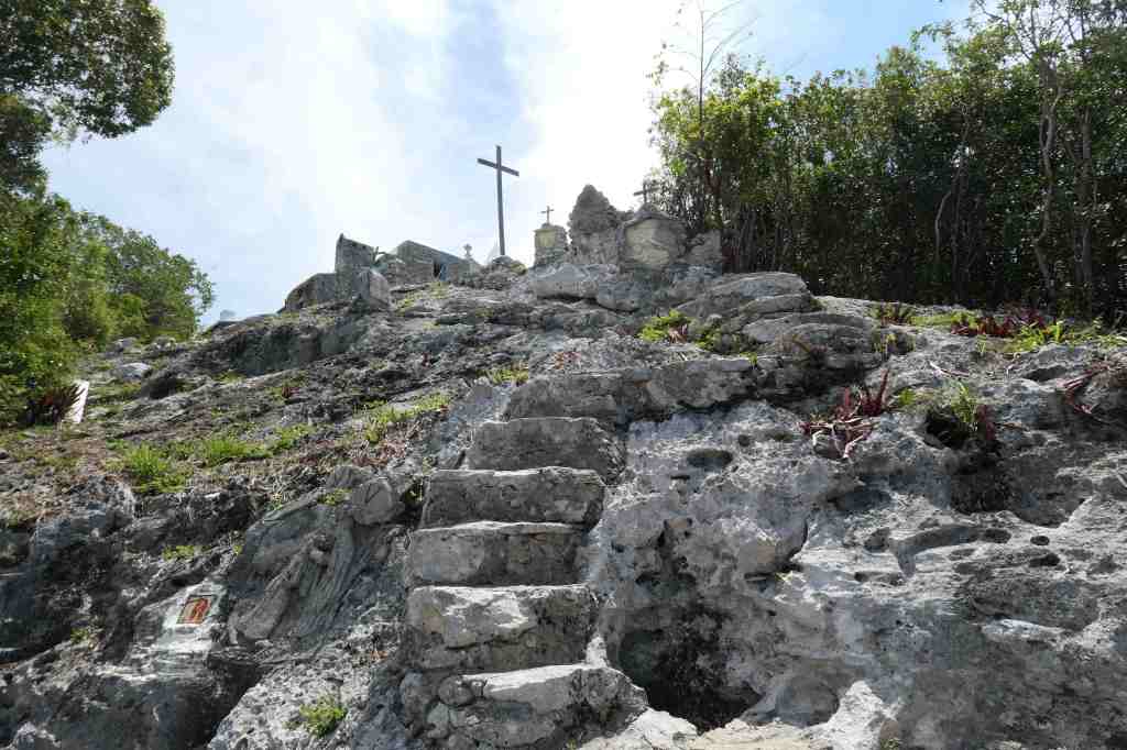Easter Monday seemed the perfect time for us to revisit the Hermitage that sits on Mount Alvernia, at 206 feet above sea level, the highest elevation in the Bahamas. From our earlier posts, you might remember that the builder, Father Jerome, after building a bunch of churches all over the islands, came to Cat Island in his early 60’s to single-handedly HAND-build, with local stone, a little hermitage and chapel to spend his final years as a hermit. Yeah, we think it’s a very cool place and we’re excited to share it with our friends.