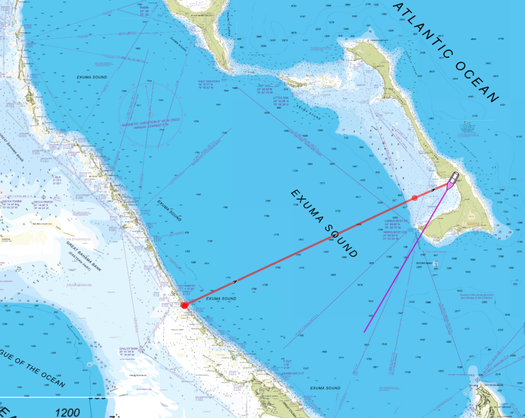 We had positioned off Galliot Cay, Exuma to set up for the 53 nautical mile “straight shot!” crossing of the Exuma Sound to Cat Island.