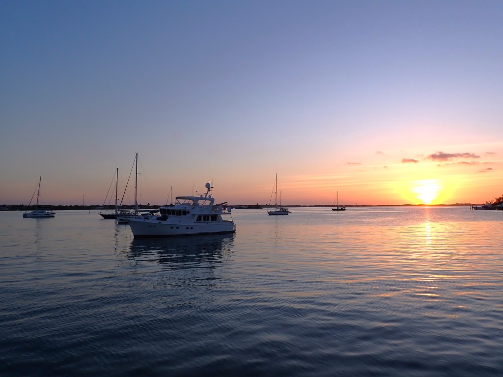 To top it off, Lynn pinged us with an invitation to dinner aboard Finish Grade so we wouldn’t have to worry about cooking and could focus on last minute details, a kind gesture that almost brought a tear to our eyes. Knowing that Tuesday morning would involve Susie packing and fussing over the last things she wants Todd to remember (along with a sweet list of Honey Do’s), we dined with Terry & Lynn and celebrated the sun setting over Marsh Harbour.