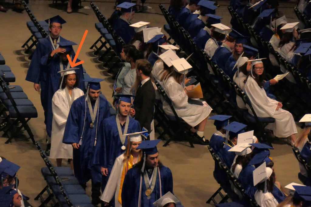 Given Kayla’s “lack of height,” it was impossible to find her hidden in the sea of caps and gowns. We finally spotted her as the row she was in headed up to receive their diplomas.