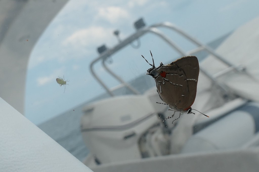 We smacked and swatted – and scratched – in bewilderment for hours, laughing all the while! So much for the more peaceful cruising day.