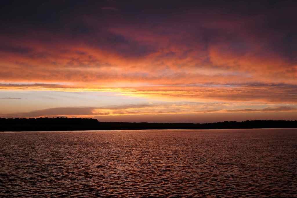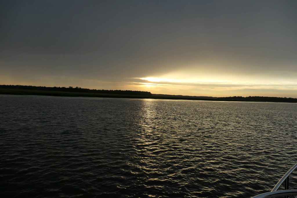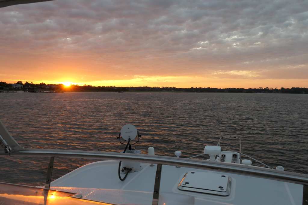 We started at sunrise because we learned that Terry and Lynn on Finish Grade were just a day ahead of us. So, they stayed put and we put in a long day to join them at Lady’s Island Marina in Beaufort, SC. After welcoming us aboard for a fantastic dinner, we spent the evening catching up on each other’s plans.