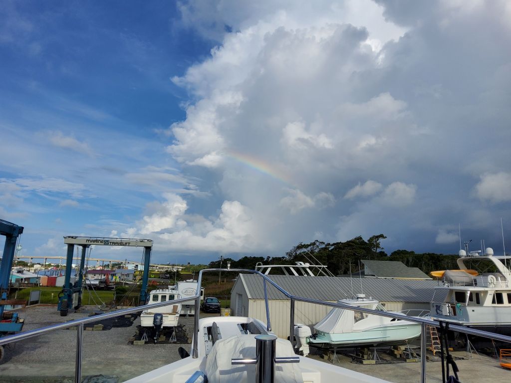 As I was sitting there, I clearly heard (felt?), “This will be hard.” I looked up to see a section of dark grey clouds had formed in the blue sky in front of me. My thought was, naturally, something really difficult is coming. I mean, I don’t typically receive such clear messages, let alone ominous ones. I questioned God, and received the same word, “This will be hard.” There was a terrible weight in my soul, but I felt overwhelmed by His presence. Then I was shown an illustration that just as problems/storms blow into our lives, they do move away. I watched as some of the clouds blew off, revealing a piece of a rainbow, and I clearly heard (felt?), “but it’s going to be okay.”