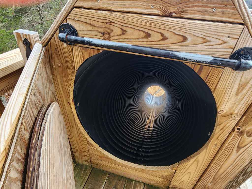 In addition to the shuffleboard hiding under that long table, there’s this contraption off the side deck: