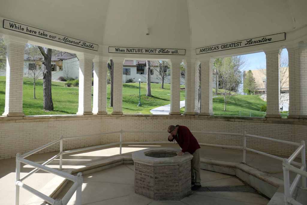 Of the original springs that put French Lick on the map, all but one are capped. We went off in search of the one remaining open well, located at the French Lick Springs Hotel. What we learned is that, in the end, the water is essentially… (read the sign on the right!)