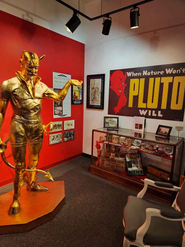 What’s this about springs? Well, around 1840, Dr. William Bowles and his business partner began selling the local mineral spring water they called “Pluto Water,” after the Greek god of the underworld. “Taking the waters” was promoted to cure a host of maladies, including alcoholism, influenza, asthma, blah, blah, etc. Everything! Revenues surpassed $1 million in 1919. Production of Pluto Water ceased in 1972, however, after traces of LITHIUM were discovered.