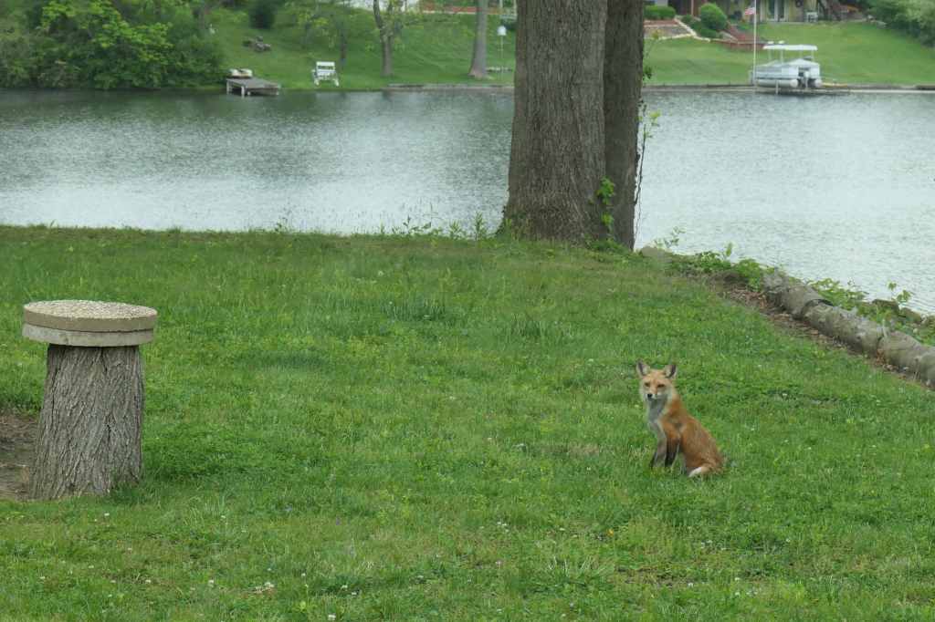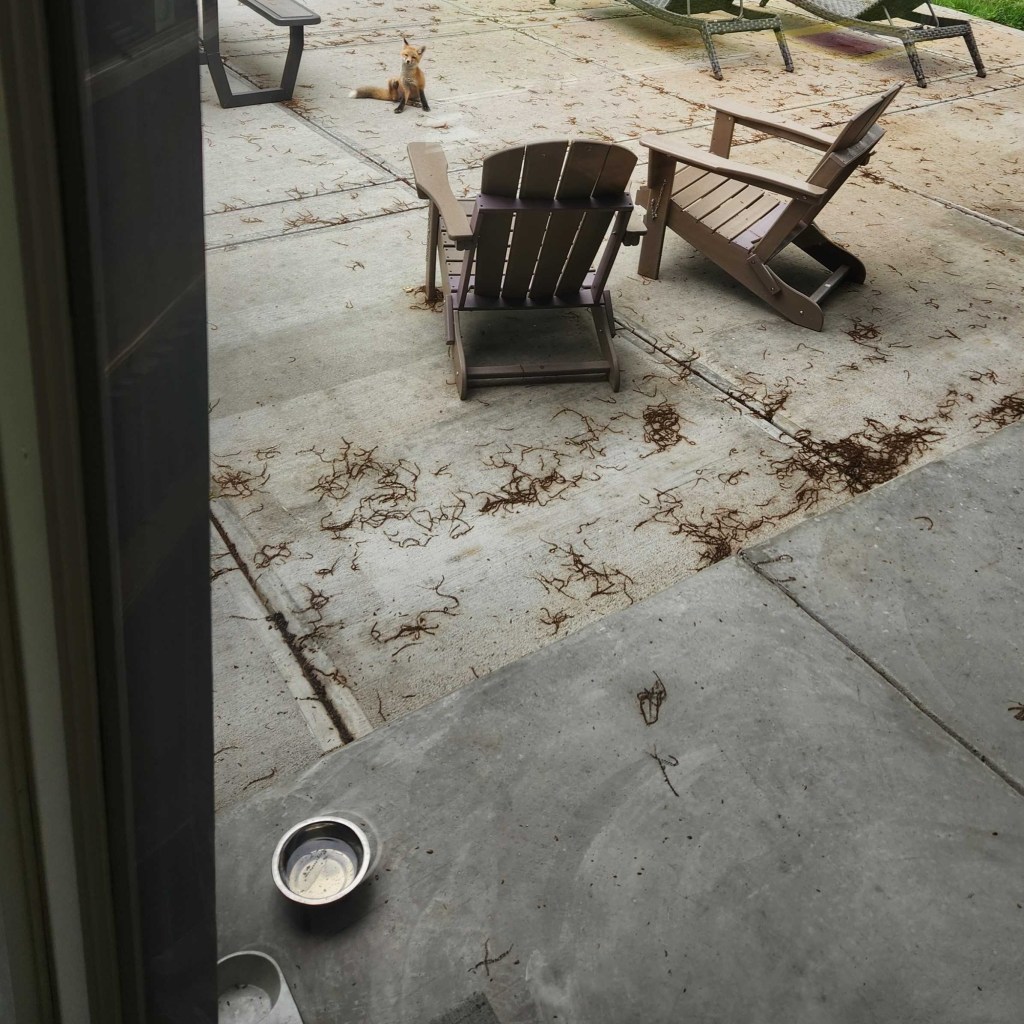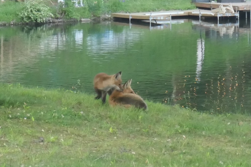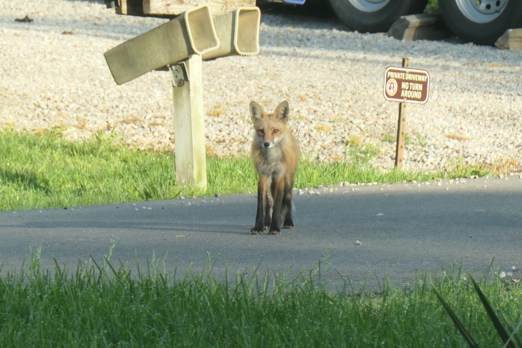A few mornings back, we awoke to find a red fox and her three kits in our side yard and the driveway next door.