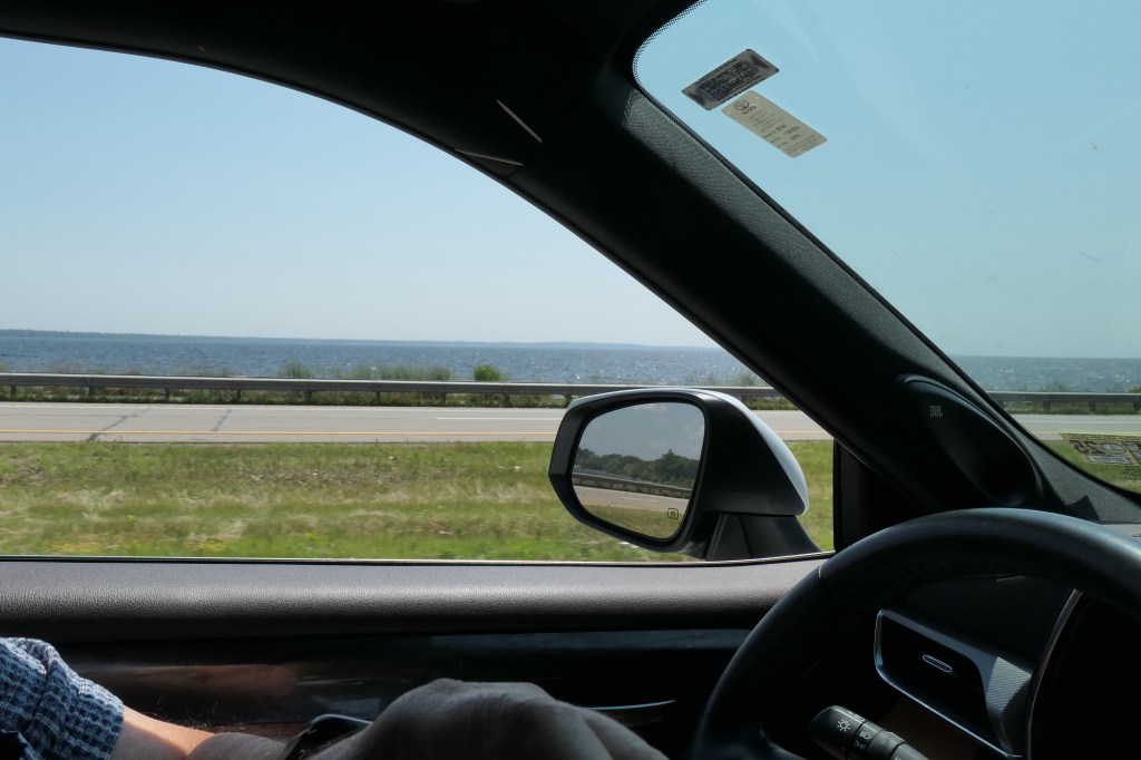 The morning after we saw Tahquamenon Falls, we loaded the car and drove out across the field. Forward ho! Time to change states!