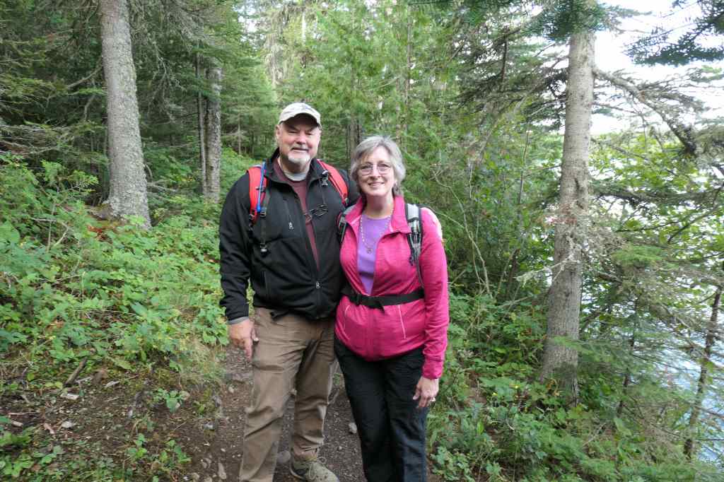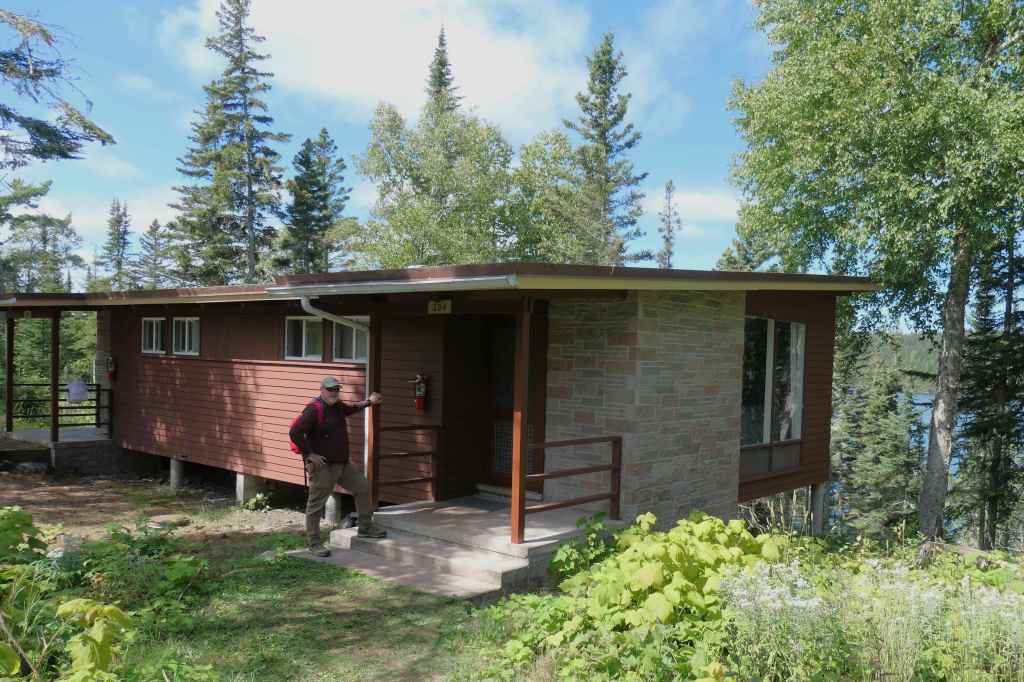 Matters not, since there’s no phone service on the island. No choice but to walk the 0.6 miles back to the lodge office to report the situation, which they offered to rectify straightaway. And they did. They jetted off on their golfcart. Ah, thanks? Oh well, we trekked back up the 0.6-mile path to the cabin.