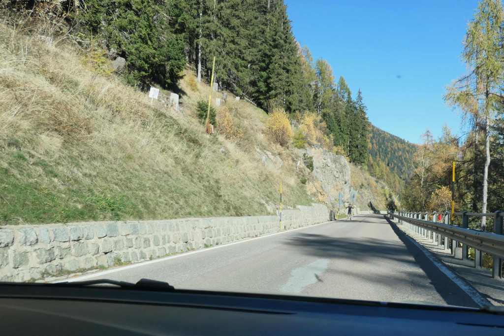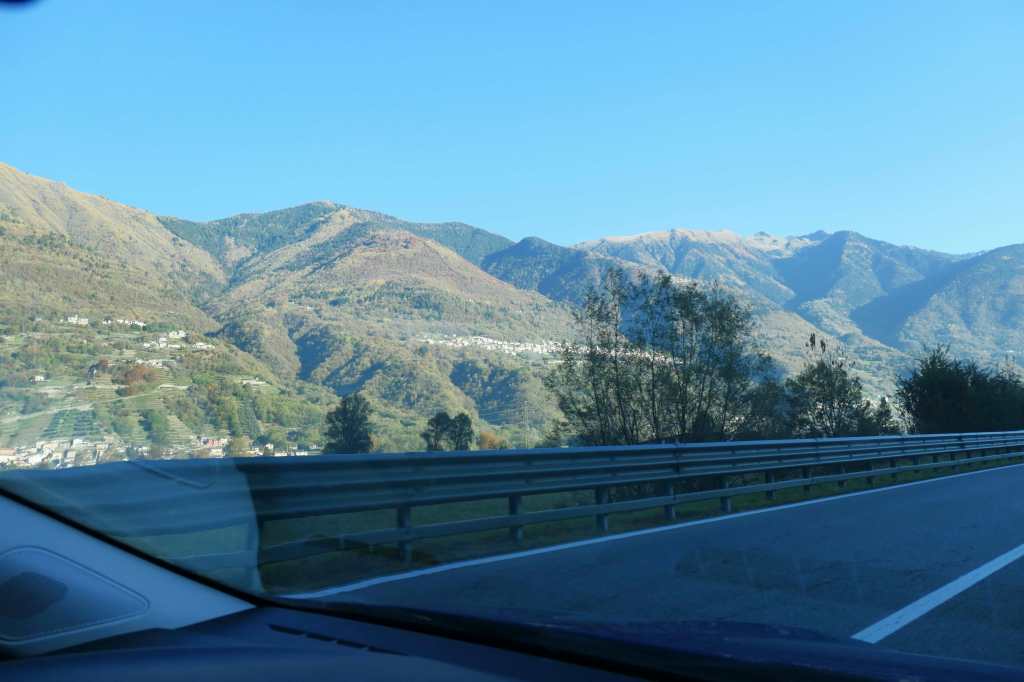 Not the Swiss Alps, the Dolomites, otherwise known as the Italian Alps. We’d planned a 175-mile drive north and then east over to Trento to skirt along the lower edge of the Alps. Too close to winter to venture way up there – we prefer to see the snow only from a distance.