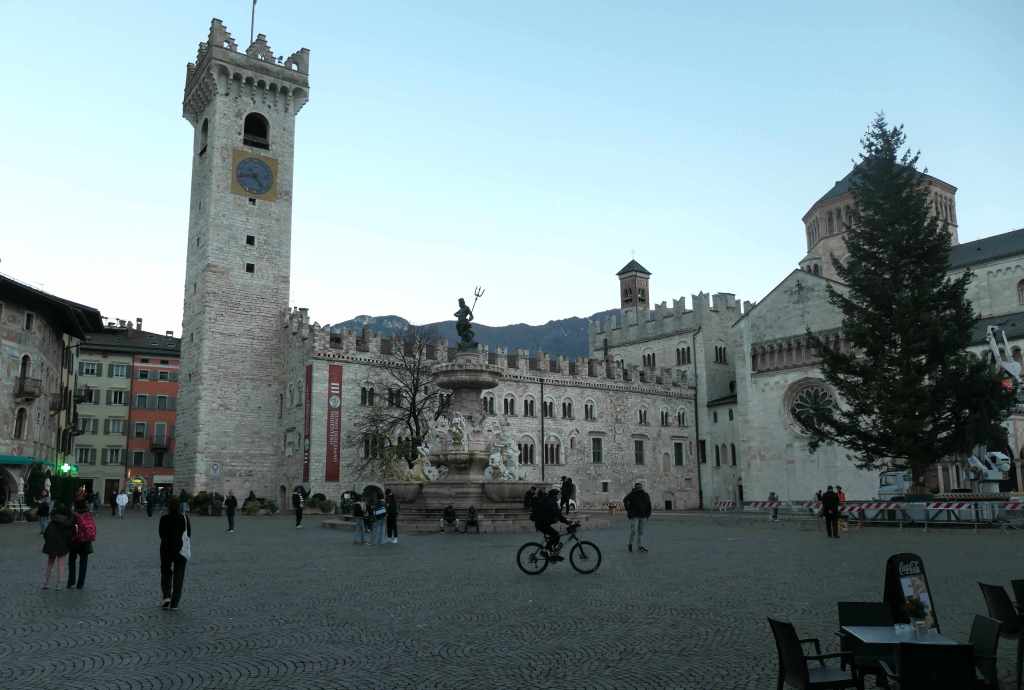 As the sun was setting, we reached Trento, left the car resting in a small parking garage outside the town center, and set out on foot to find our small B&B, supposedly very near the historic Church of Santa Maria Maggiore. We found the church easily enough – those bell towers are so helpful – and after a few wrong turns, located our lodging.