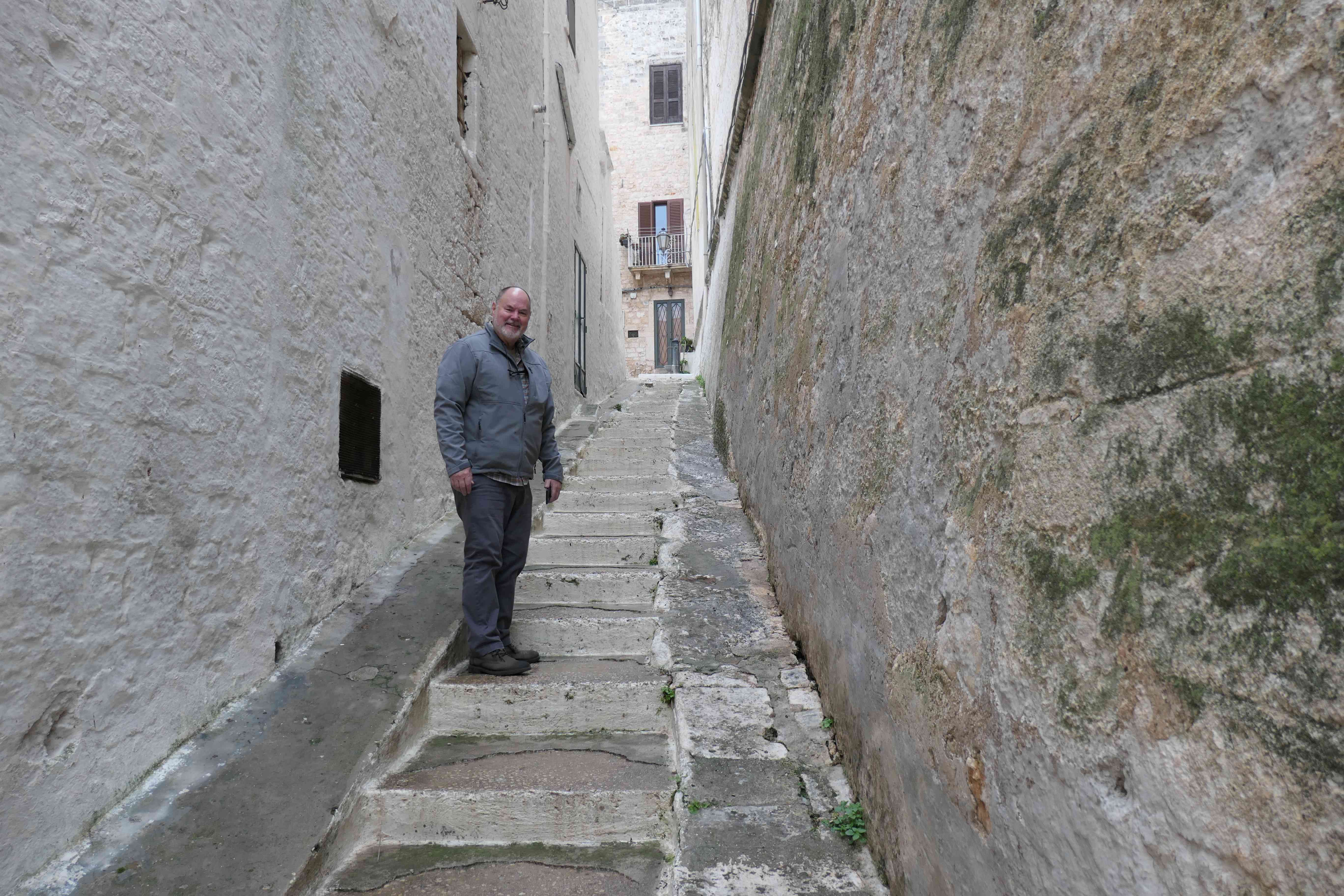 We made our way through the dual villages to the large church at the far end of the historic area to find it closed due to an exterior construction project. As we turned to retrace our way through Alberobello, we practically bumped into… Vito, from the restaurant the night before!