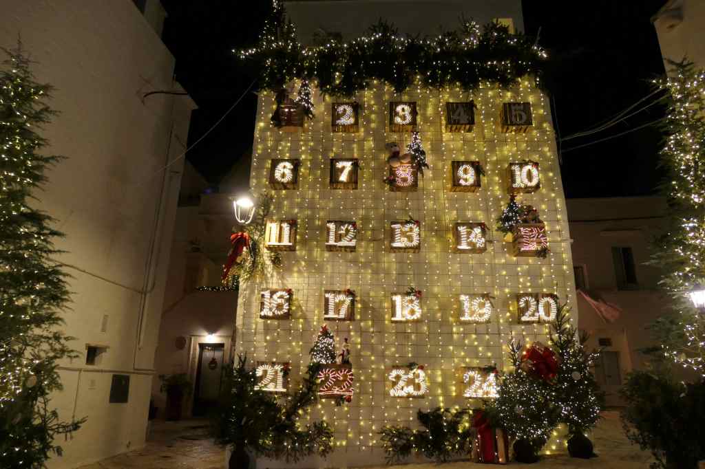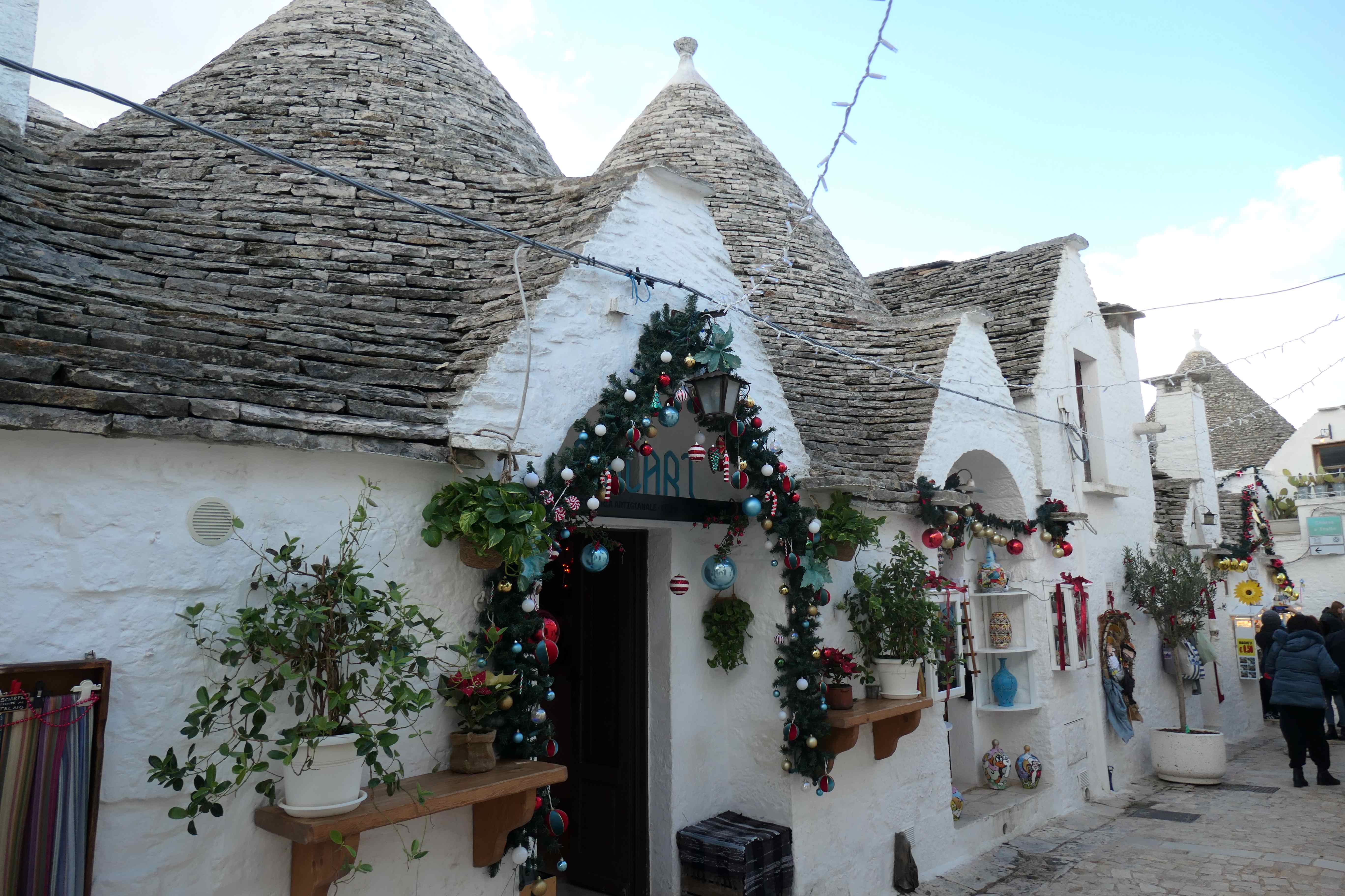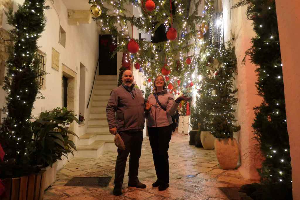 On the way back to the rental, at the suggestion of our host, we explored another charming, white-washed hilltop town to sip hot chocolate and enjoy the Christmas lights. Locorotondo, a town within the Metropolitan City of Bari, is a winner of the coveted “Most Beautiful Villages in Italy” award, and on this night, the town was wearing lots of sparkles!