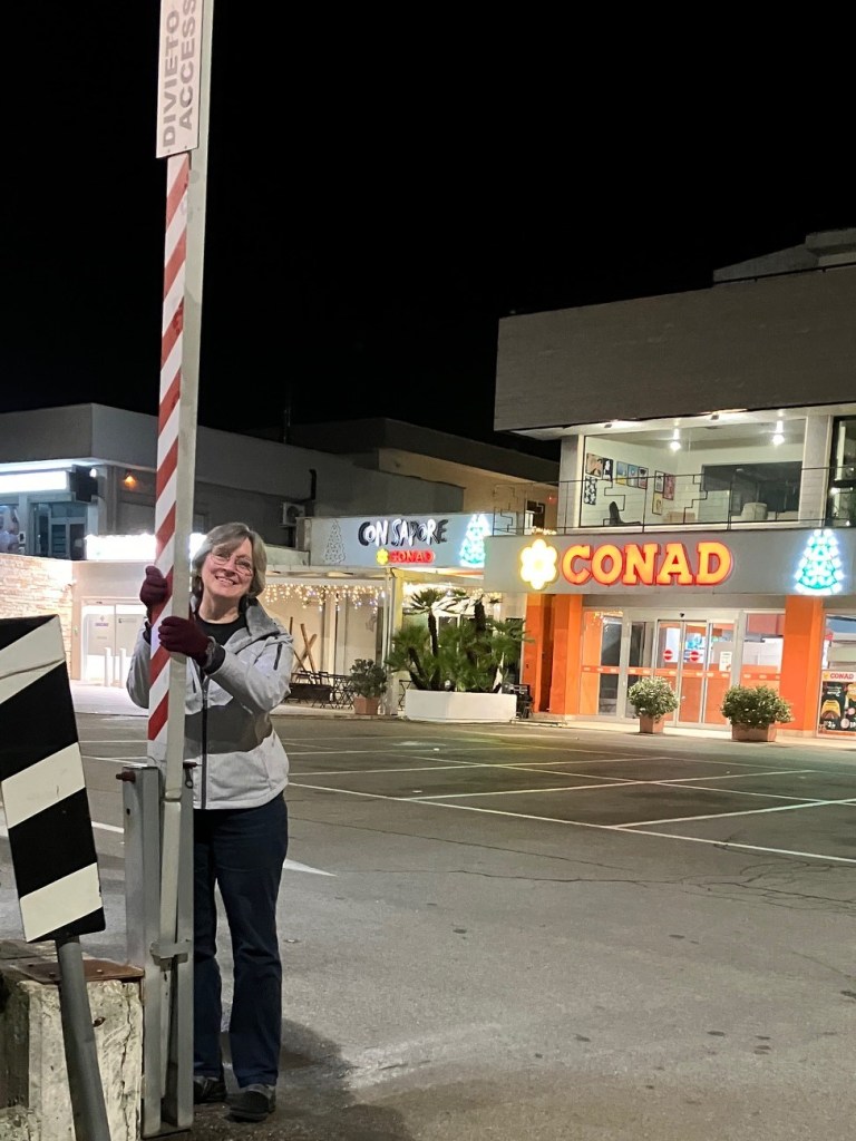 The GPS is typically close but not always accurate, and the directions provided by the owner took us to the wrong place. As we pulled up to the festively lit (incorrect) house, a smiling woman who spoke absolutely no English stepped out to assist. Recognizing the hosts’ names in our gibberish, she held up a hand for us to stay put, went back inside and returned with two teenage boys, telling us through gestures that we’d come too far and should turn around to follow the boys – now doubled up on a motorbike – to the proper house. We got a kind-hearted Italian escort to the correct gate, where we finally found the rental owner waiting, thanks to a phone call from her friendly neighbor!